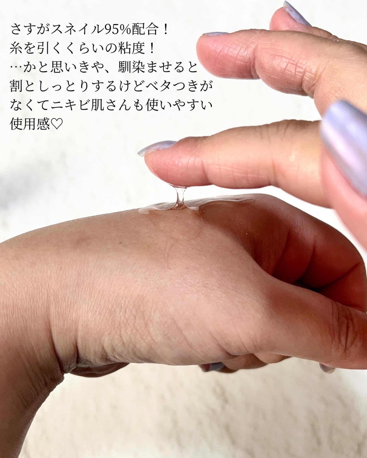 | 出してみると糸を引くほどの トロトロテクスチャー!ジェルよりは流動性があり 伸ばしやすく、馴染みもいい印象。 | 詳細を見る |