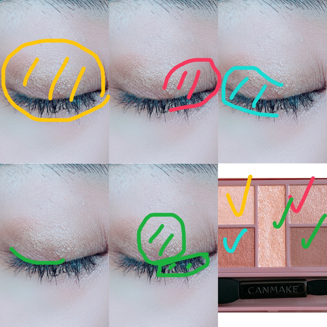 - 1枚のパレットで2つのスタイルが完成! 5色の欲ばりアイシャドウ♥ メインカラーを選んで2つのスタイルが楽しめる! A→B→D でスタイル1 A→C→D でスタイル2 繊細な粉質が、しっとりとまぶたに密着して色落ちを防ぎます。 透明感のあるキラうるトッピングジュエル(繊細ラメ)は、気分によってトッピング!
