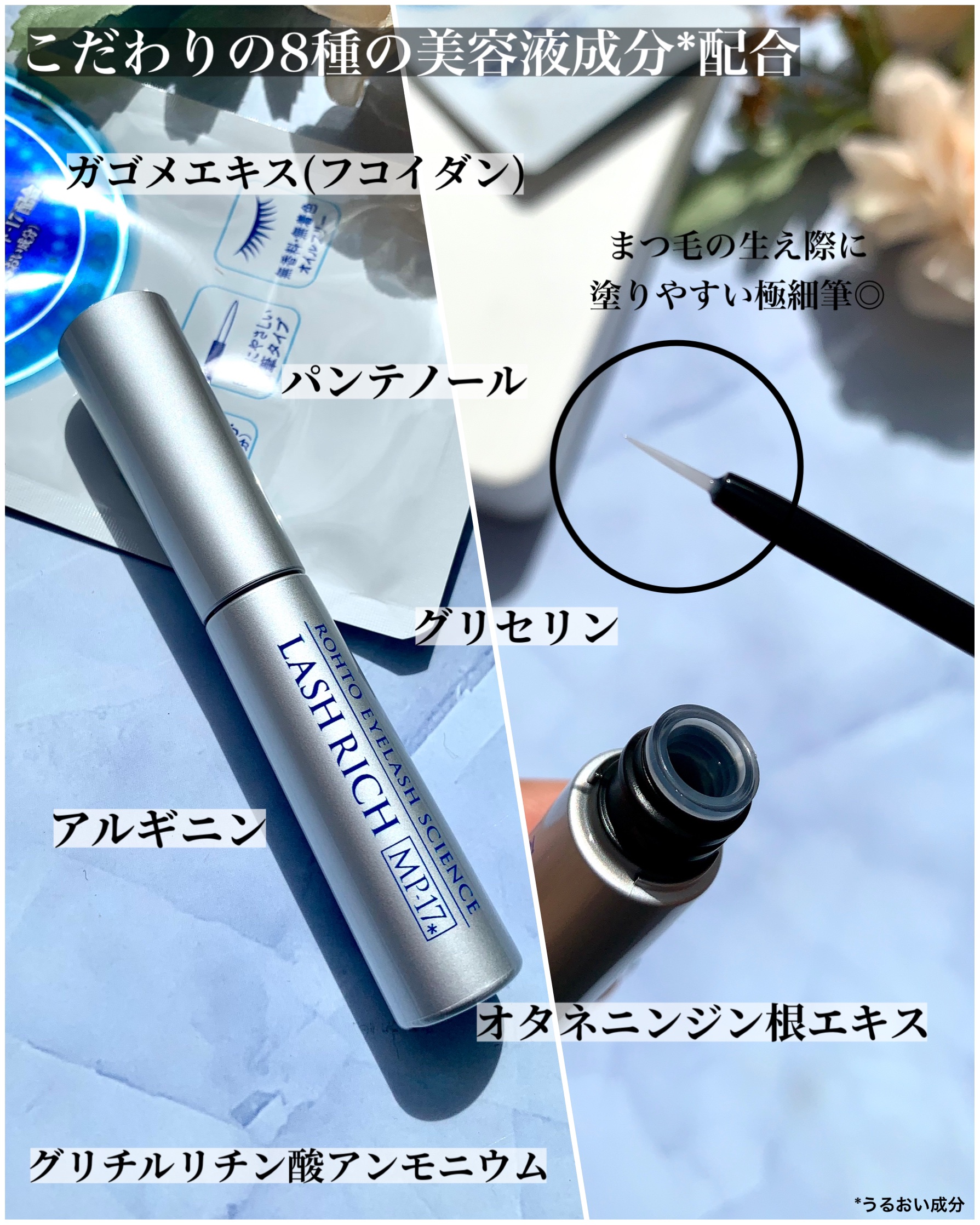 日本で唯一*MPー17を配合したまつ毛美容液を正直レビューしました! 国内唯一MP-17*・コラプラスをはじめとした8種の美容液成分配合。 ハリコシのある、存在感**のあるまつ毛に憧れる方におすすめです♡/