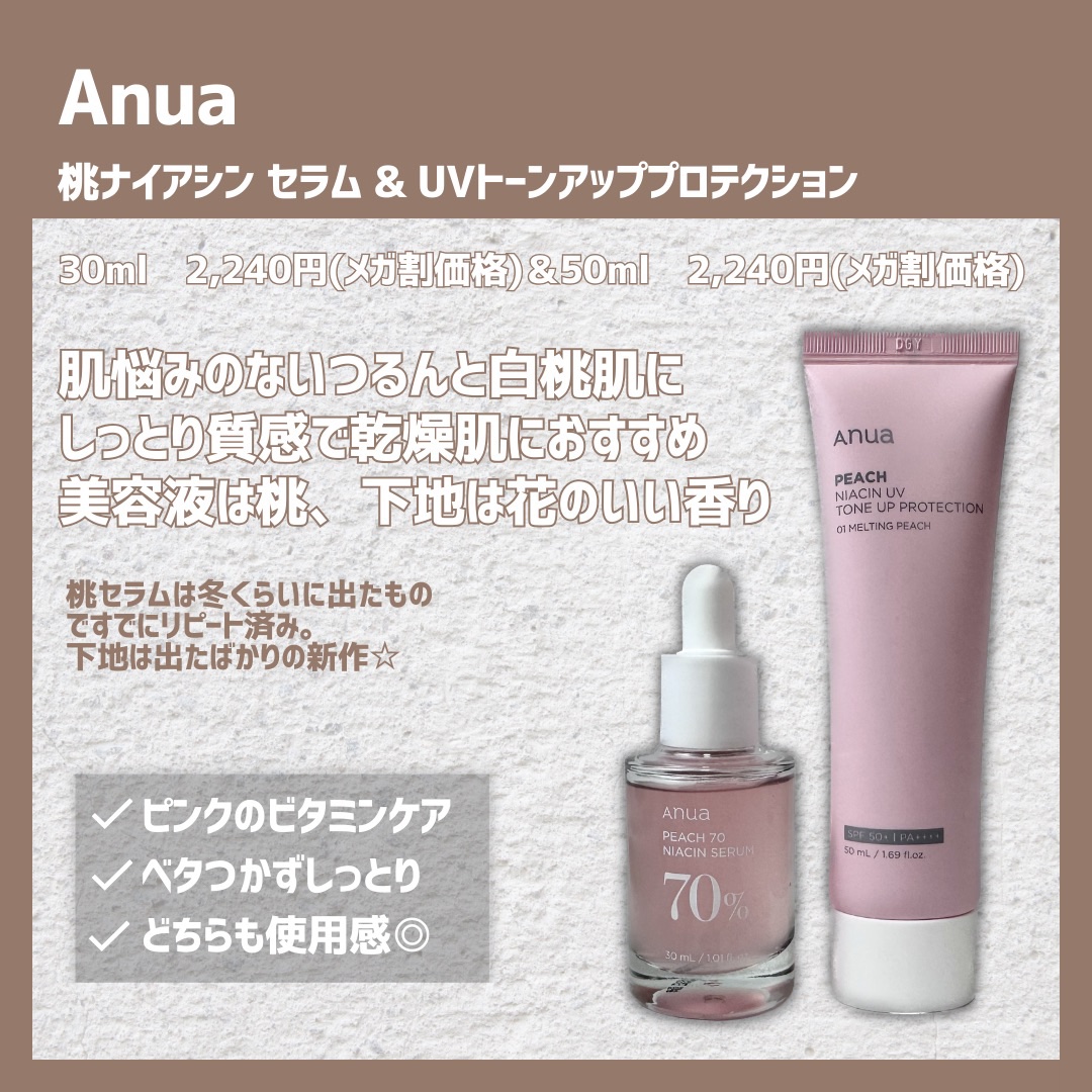 Anua 桃70%ナイアシンセラム | 2,579円 |