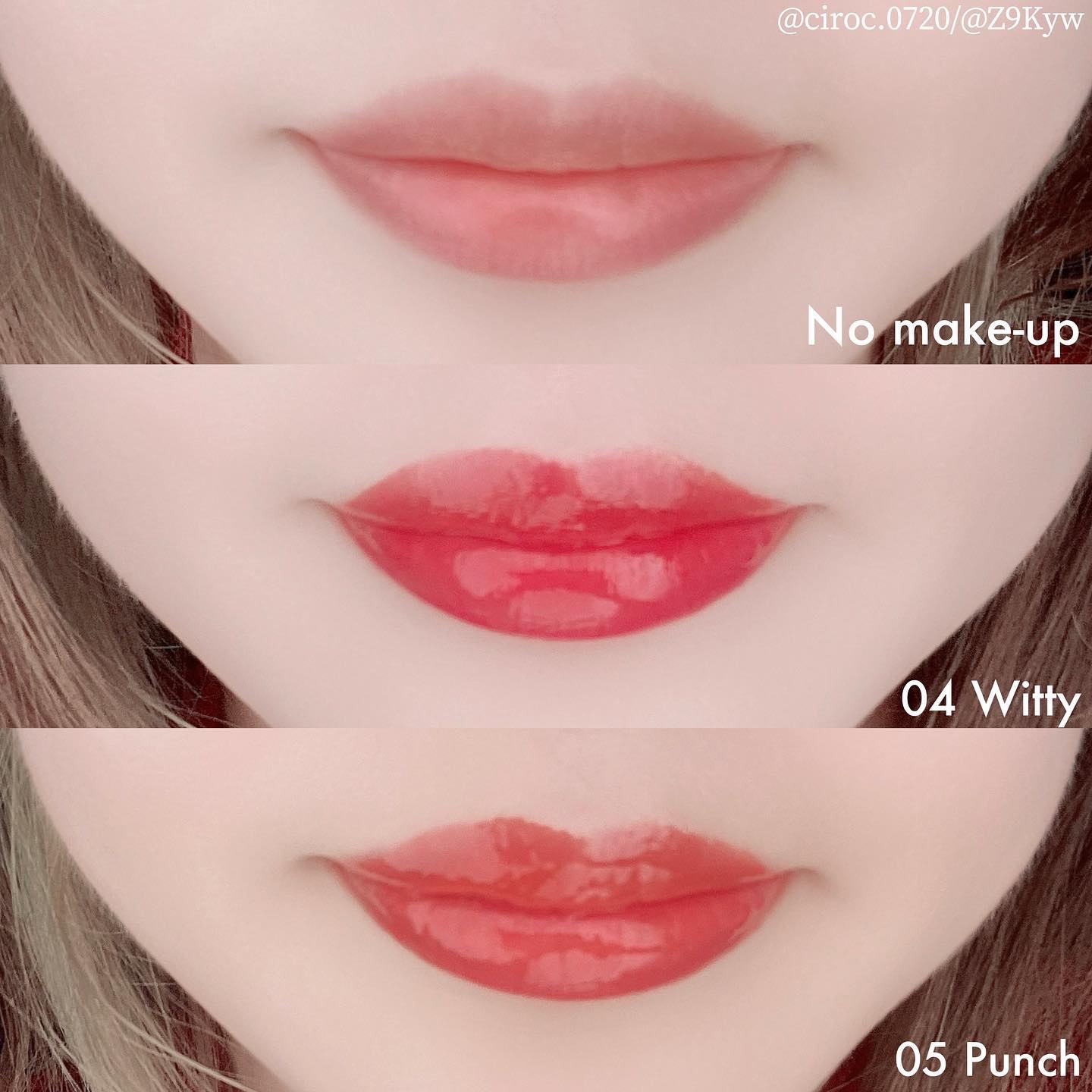 - <01 ソフィー(Surfy)> リンゴ酸ジイソステアリル、ジフェニルシロキシフェニルトリメチコン、精製水、ジフェニルジメチコン、ビスジグリセリルポリアシルアジペート-2、水添ポリイソブテン、ポリグリセリン-3、ポリソルベート60、セチルPEG/PPG-10/1ダイメチコン、イソステアリン酸ソルビタン、BG、ペンチレングリコール、1,2-ヘキサンジオール、ダイメジメチコン、アクリル酸ヒドロキシエチル/ナトリウムアクリロイルジメチルタウリン酸共重合体スクアラン、セテアレス-20、二酸化チタン、エチルヘキシルグリセリン、赤色227号、黄色5 号、香料、赤色104号(1)、水酸化酸化アルミニウム、ポリアクリル酸アンモニウム溶液、黄色4号、フェノキシエタノール、マカデミア種子油、ローズヒップ油、ツバキ油、トコフェロール <02 ピンクラッシュ(Pinkrush)> リンゴ酸ジイソステアリル、ジフェニルシロキシフェニルトリメチコン、精製水、ビスジグリセリルポリアシルアジペート-2、ジフェニルジメチコン、水添ポリイソブテン、ポリグリセリン-3、ポリソルベート60、セチルPEG/PPG-10/1ダイメチコン、イソステアリン酸ソルビタン、BG、ダイメジメチコン、ペンチレングリコール、1,2-ヘキサンジオール、アクリル酸ヒドロキシエチル/ナトリウムアクリロイルジメチルタウリン酸共重合体スクアラン、セテアレス-20、二酸化チタン、エチルヘキシルグリセリン、赤色227号、黄色5 号、香料、水酸化酸化アルミニウム、ポリアクリル酸アンモニウム溶液、フェノキシエタノール、マカデミア種子油、ローズヒップ油、ツバキ油、トコフェロール <03 グレア(Glare) > リンゴ酸ジイソステアリル、ジフェニルシロキシフェニルトリメチコン、精製水、ビスジグリセリルポリアシルアジペート-2、ジフェニルジメチコン、水添ポリイソブテン、ポリグリセリン-3、ポリソルベート60、セチルPEG/PPG-10/1ダイメチコン、イソステアリン酸ソルビタン、BG、ペンチレングリコール、1,2-ヘキサンジオール、ダイメジメチコン、アクリル酸ヒドロキシエチル/ナトリウムアクリロイルジメチルタウリン酸共重合体スクアラン、セテアレス-20、二酸化チタン、エチルヘキシルグリセリン、黄色5 号、香料、赤色104号(1)、赤色227号、水酸化酸化アルミニウム、ポリアクリル酸アンモニウム溶液、黄色4号、フェノキシエタノール、ブリリアントブルーFCF、マカデミア種子油、ローズヒップ油、ツバキ油、トコフェロール <04 ウィッティー(Witty)> リンゴ酸ジイソステアリル、ジフェニルシロキシフェニルトリメチコン、精製水、ビスジグリセリルポリアシルアジペート-2、ジフェニルジメチコン、水添ポリイソブテン、ポリグリセリン-3、ポリソルベート60、セチルPEG/PPG-10/1ダイメチコン、イソステアリン酸ソルビタン、BG、ダイメジメチコン、ペンチレングリコール、1,2-ヘキサンジオール、アクリル酸ヒドロキシエチル/ナトリウムアクリロイルジメチルタウリン酸共重合体スクアラン、セテアレス-20、二酸化チタン、黄色5 号、赤色227号、エチルヘキシルグリセリン、香料、水酸化酸化アルミニウム、ポリアクリル酸アンモニウム溶液、フェノキシエタノール、マカデミア種子油、ローズヒップ油、ツバキ油、トコフェロール <05 パンチ(Punch)> リンゴ酸ジイソステアリル、ジフェニルシロキシフェニルトリメチコン、精製水、ジフェニルジメチコン、ビスジグリセリルポリアシルアジペート-2、水添ポリイソブテン、ポリグリセリン-3、ポリソルベート60、セチルPEG/PPG-10/1ダイメチコン、イソステアリン酸ソルビタン、BG、ペンチレングリコール、1,2-ヘキサンジオール、ダイメジメチコン、アクリル酸ヒドロキシエチル/ナトリウムアクリロイルジメチルタウリン酸共重合体二酸化チタン、スクアラン、セテアレス-20、黄色5 号、エチルヘキシルグリセリン、香料、赤色227号、赤色104号(1)、水酸化酸化アルミニウム、ポリアクリル酸アンモニウム溶液、フェノキシエタノール、マカデミア種子油、ローズヒップ油、ツバキ油、トコフェロール <06 ディア(Dear)> リンゴ酸ジイソステアリル、ジフェニルシロキシフェニルトリメチコン、精製水、ジフェニルジメチコン、ビスジグリセリルポリアシルアジペート-2、水添ポリイソブテン、ポリグリセリン-3、ポリソルベート60、セチルPEG/PPG-10/1ダイメチコン、イソステアリン酸ソルビタン、BG、ペンチレングリコール、1,2-ヘキサンジオール、ダイメジメチコン、アクリル酸ヒドロキシエチル/ナトリウムアクリロイルジメチルタウリン酸共重合体スクアラン、セテアレス-20、二酸化チタン、エチルヘキシルグリセリン、黄色5 号、赤色227号、香料、水酸化酸化アルミニウム、黄色4号、ポリアクリル酸アンモニウム溶液、フェノキシエタノール、マカデミア種子油、ブリリアントブルーFCF、ローズヒップ油、ツバキ油、トコフェロール <07 カインド(Kind)> リンゴ酸ジイソステアリル、ジフェニルシロキシフェニルトリメチコン、精製水、ジフェニルジメチコン