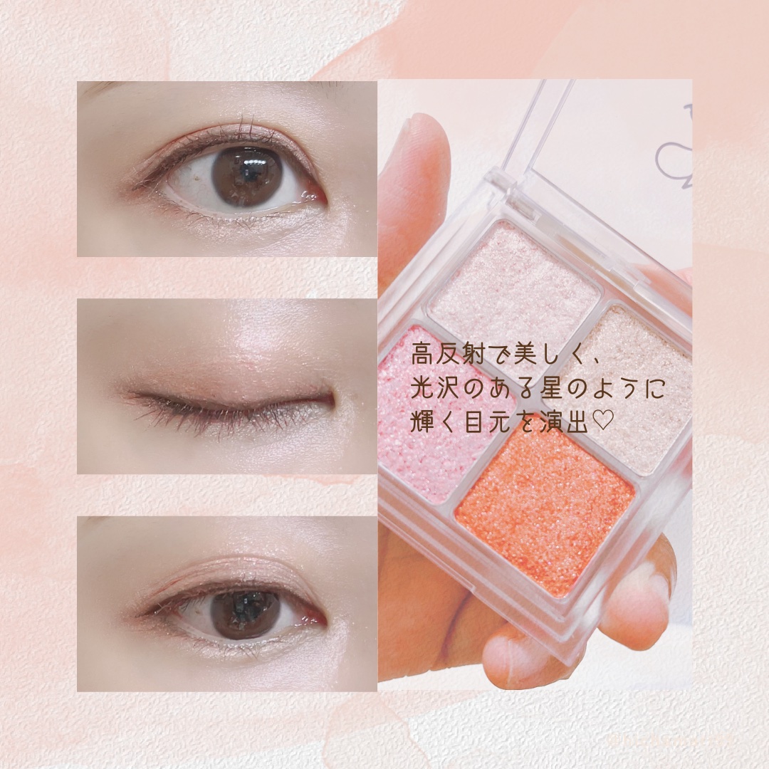 \今だけの限定色/ 1個税込¥500で話題のキレイアンドコー♡ 限定色のアイシャドウパレットをお試ししてみました♡ プチプラなのに9色も入っていてそれでいて結構高発色!! ラメはブラシよりもチップを使う方がしっかりのると思います⭐️ しっかり色をのせると私の肌色だと目元がくすんで見える気がしたので、このやり方だとモーヴも使えるぞ!!(歓喜🎉) 色味が合わなかったとしてもラメがとっても可愛い〜♡ ラメだけ使うと考えても安いよね♡ 私が買いに行ったウエルシアも残り3点になっていたり、結構売れてそうです💦