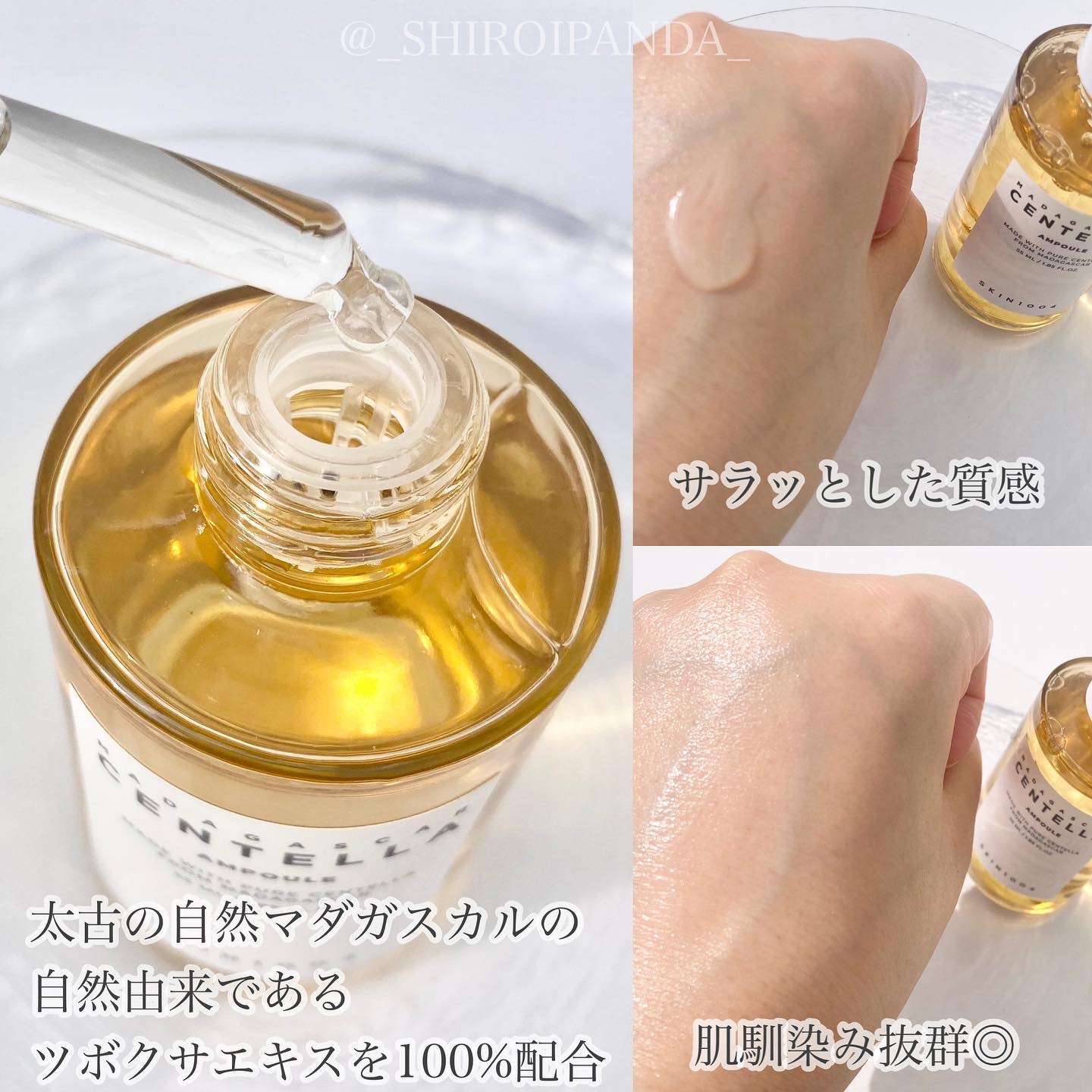 - 太古の自然マダガスカルの自然由来ツボクサエキス*1を100%配合し、乾燥により刺激を受けた肌を整える美容液です。敏感に傾いた肌を素早く整える*2と同時に、乾燥による外部の刺激によって荒れやすい肌をしっとり艶やかに導きます。ベタつかないサラっとしたテクスチャーで、潤いをたっぷりと。 *1ツボクサエキス(保湿成分) *2パッチテスト済み(すべての方に刺激が起きないわけではありません)