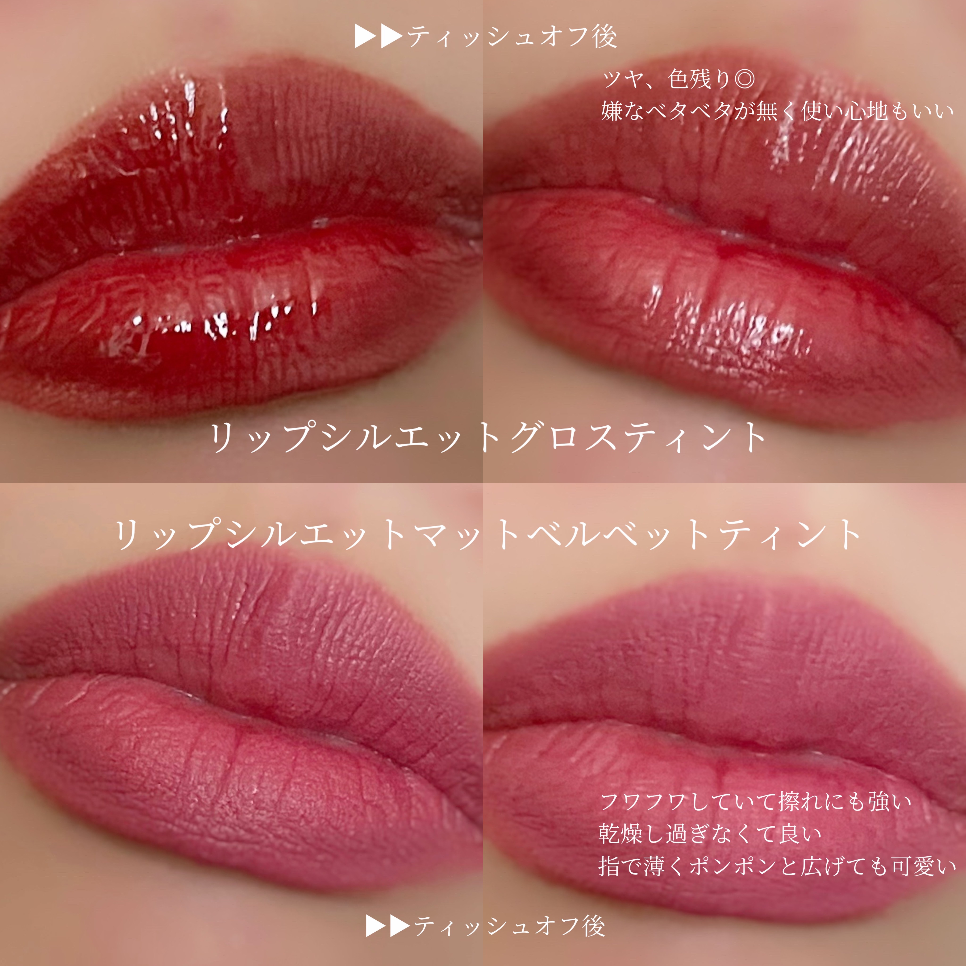 最近本当にマットリップが好きで好きで、ここ数年で、20数種類は購入しているんじゃないかと思っております💸 個人的には4種類ともオススメ度は高め🌈 その中でも、✔︎i’m meme リップシルエットマットベルベットティントと✔︎nuegray デイリームードマットリキッドは特にオススメです^ ^
