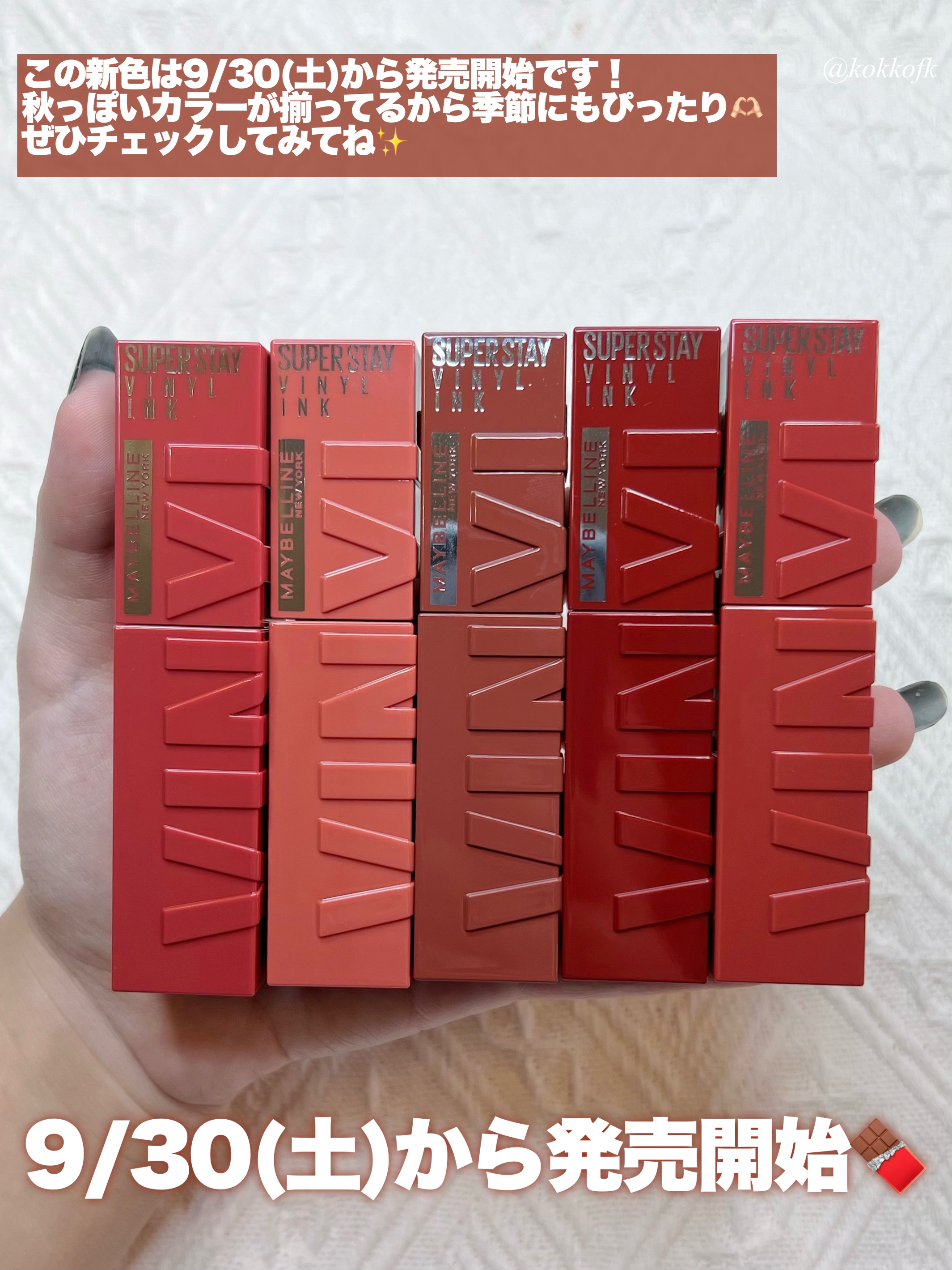 秋冬に主役級リップ登場MAYBELLINENEWYORKSPステイヴィニルインク130極上のローストチョコレート各1969円(税込)こちらはロフトのコスフェスでメイベリン様より頂きました。色もツヤも落ちない!最長16時間続く、落ちないリップ*...