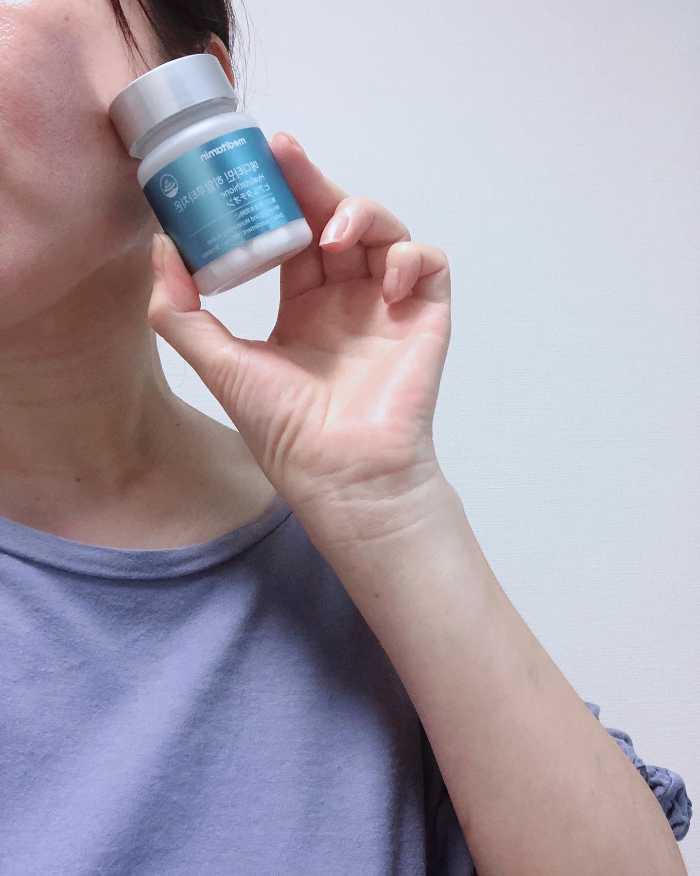9つの美容成分がたっぷり含有されたサプリメントですヒアルロン酸.グルタチオン.NMNビタミンC.Lーシスチン.エラスチン.コラーゲンミルクセラミド.ドクダミエキス粉末配合で1日1粒で美肌ケアができます白い錠剤はよく見るとツブツブとした含有物が...