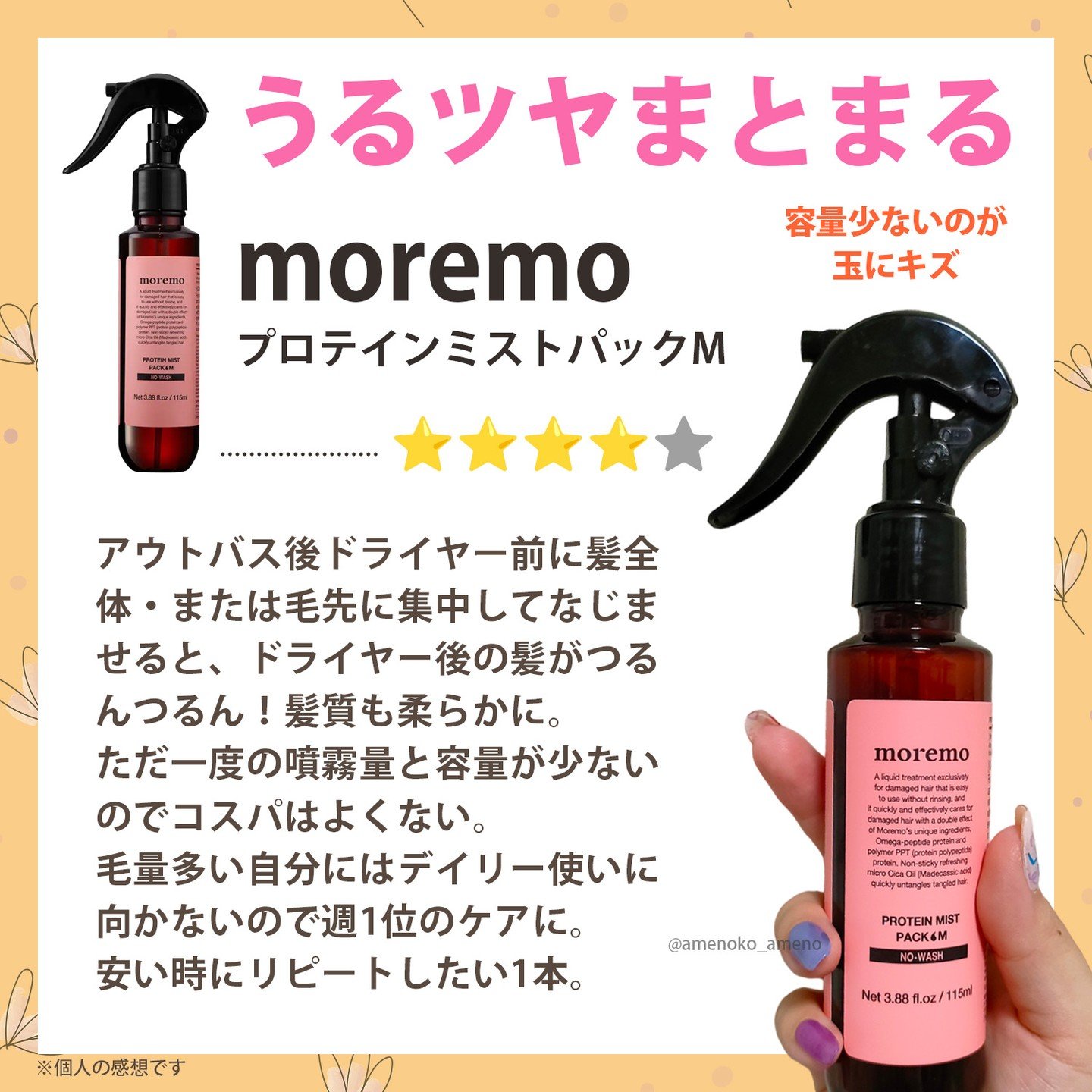 | ヘアケア・スタイリングランキング第42位 | 乾かすとつるんとした手触りの髪になるのも良き◎ウォーターなので、使用感が軽いところも良いな〜〜と思いました | 詳細を見る | |