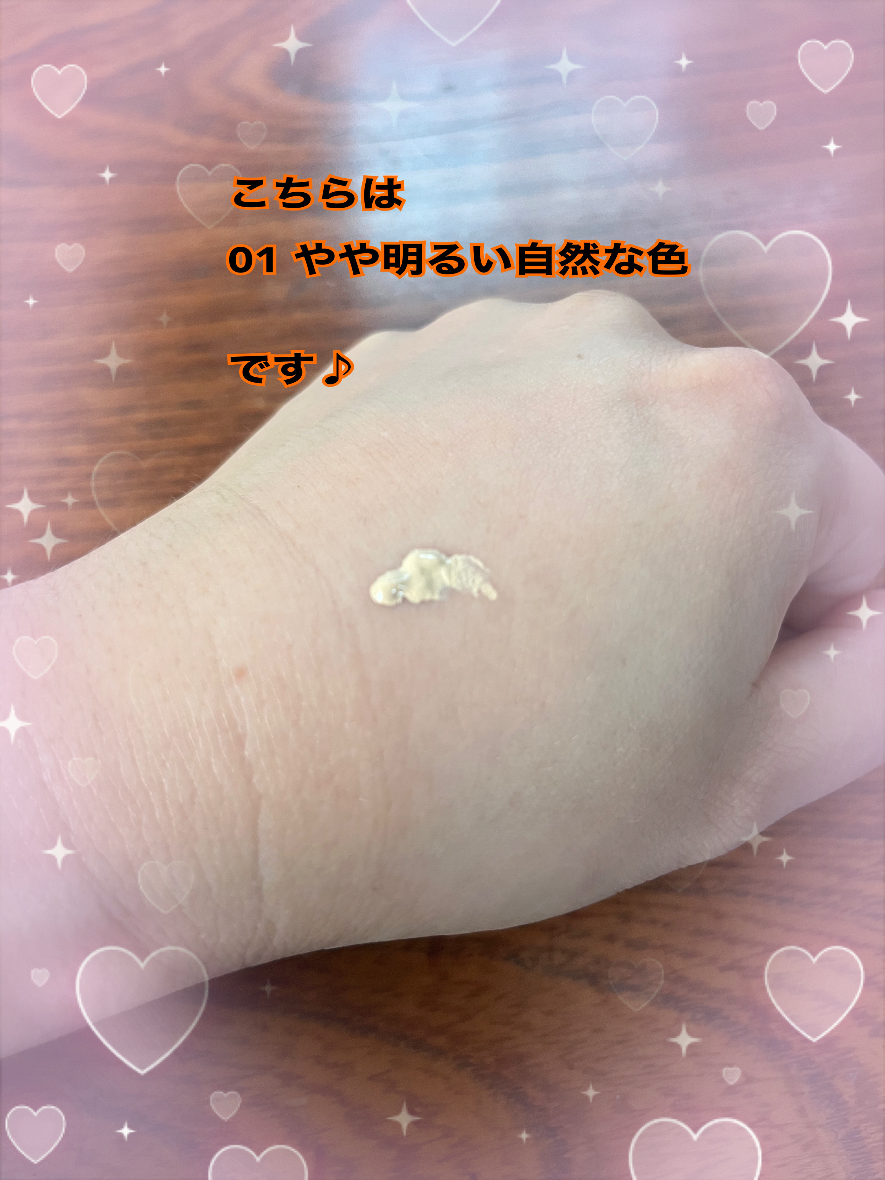 - <01 やや明るい自然な色> 水、シクロペンタシロキサン、メトキシケイヒ酸エチルヘキシル、イソノナン酸イソトリデシル、エタノール、PEG-9ポリジメチルシロキシエチルジメチコン、メチルトリメチコン、ジエチルアミノヒドロキシベンゾイル安息香酸ヘキシル、パルミチン酸オクチル、メチレンビスベンゾトリアゾリルテトラメチルブチルフェノール、ジステアルジモニウムヘクトライト、ビスエチルヘキシルオキシフェノールメトキシフェニルトリアジン、アカヤジオウ根エキス、クインスシードエキス、ゲットウ葉エキス、シロキクラゲエキス、トウキ根エキス、トコフェロール、ノイバラ果実エキス、ハトムギ種子エキス、ベニバナ花エキス、ボタンエキス、メドウフォーム油、メロスリア根エキス、加水分解イネ葉エキス、BG、BHT、(アクリレーツ/アクリル酸エチルヘキシル/メタクリル酸ジメチコン)コポリマー、アルミナ、シリカ、ジメチコン、ステアラルコニウムヘクトライト、ステアロイルグルタミン酸2Na、タルク、ダイマージリノール酸(フィトステリル/イソステアリル/セチル/ステアリル/ベヘニル)、デシルテトラデカノール、トリエトキシカプリリルシラン、ポリイソプレン、ポリメチルシルセスキオキサン、メタクリル酸メチルクロスポリマー、ラウリルPEG-9ポリジメチルシロキシエチルジメチコン、ラウリン酸ポリグリセリル-10、塩化Na、合成フルオロフロゴパイト、酸化スズ、水酸化Al、乳酸セチル、フェノキシエタノール、香料、酸化チタン、酸化亜鉛、酸化鉄 <02 普通の明るさの自然な色> 水、シクロペンタシロキサン、メトキシケイヒ酸エチルヘキシル、イソノナン酸イソトリデシル、エタノール、PEG-9ポリジメチルシロキシエチルジメチコン、メチルトリメチコン、ジエチルアミノヒドロキシベンゾイル安息香酸ヘキシル、パルミチン酸オクチル、メチレンビスベンゾトリアゾリルテトラメチルブチルフェノール、ジステアルジモニウムヘクトライト、ビスエチルヘキシルオキシフェノールメトキシフェニルトリアジン、アカヤジオウ根エキス、クインスシードエキス、ゲットウ葉エキス、シロキクラゲエキス、トウキ根エキス、トコフェロール、ノイバラ果実エキス、ハトムギ種子エキス、ベニバナ花エキス、ボタンエキス、メドウフォーム油、メロスリア根エキス、加水分解イネ葉エキス、BG、BHT、(アクリレーツ/アクリル酸エチルヘキシル/メタクリル酸ジメチコン)コポリマー、アルミナ、シリカ、ジメチコン、ステアラルコニウムヘクトライト、ステアロイルグルタミン酸2Na、タルク、ダイマージリノール酸(フィトステリル/イソステアリル/セチル/ステアリル/ベヘニル)、デシルテトラデカノール、トリエトキシカプリリルシラン、ポリイソプレン、ポリメチルシルセスキオキサン、メタクリル酸メチルクロスポリマー、ラウリルPEG-9ポリジメチルシロキシエチルジメチコン、ラウリン酸ポリグリセリル-10、塩化Na、合成フルオロフロゴパイト、酸化スズ、水酸化Al、乳酸セチル、フェノキシエタノール、香料、酸化チタン、酸化亜鉛、酸化鉄