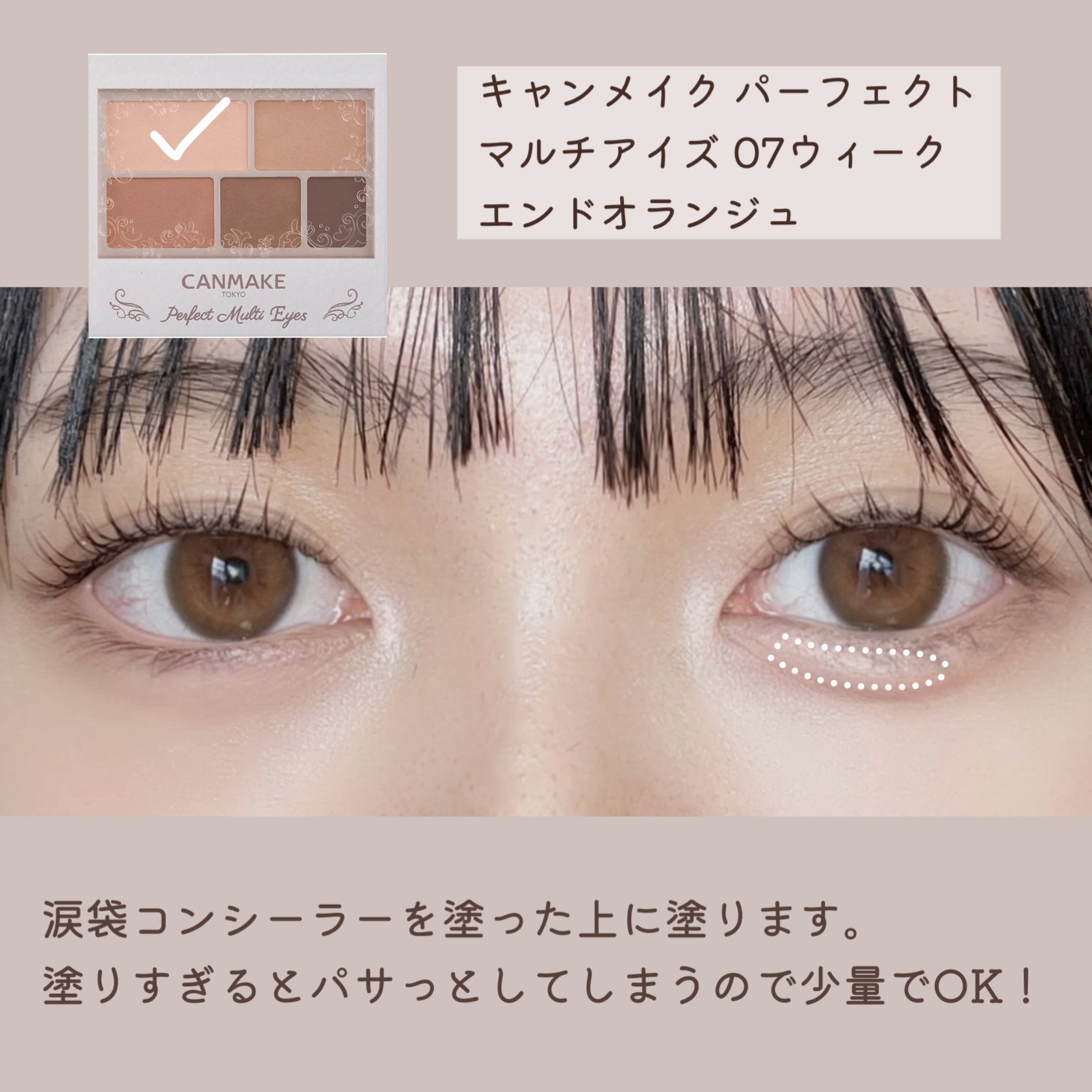 rom&nd ベターザンパレット 01PAMPAS GARDEN キャンメイク アイバッグコンシーラー 02ピンクベージュ CEZANNE ストレッチコンシーラー 30オレンジ系 これどんなに濃いクマも消える◎ やり方は画像を見てください🫶🏻 ラメを使わずに盛りたい時や、あざとく盛りたい時におすすめ!
