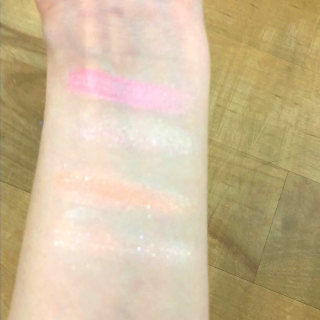 エスプリークセレクトアイカラーのPK809とOR203です。色の濃いところと明るいところをとって腕に出してみました!(1度塗り)発色もよくとても色が可愛いです!自分の好きな濃さにもできるよですごくいいなと思いました!今日1日付けてみました!(...