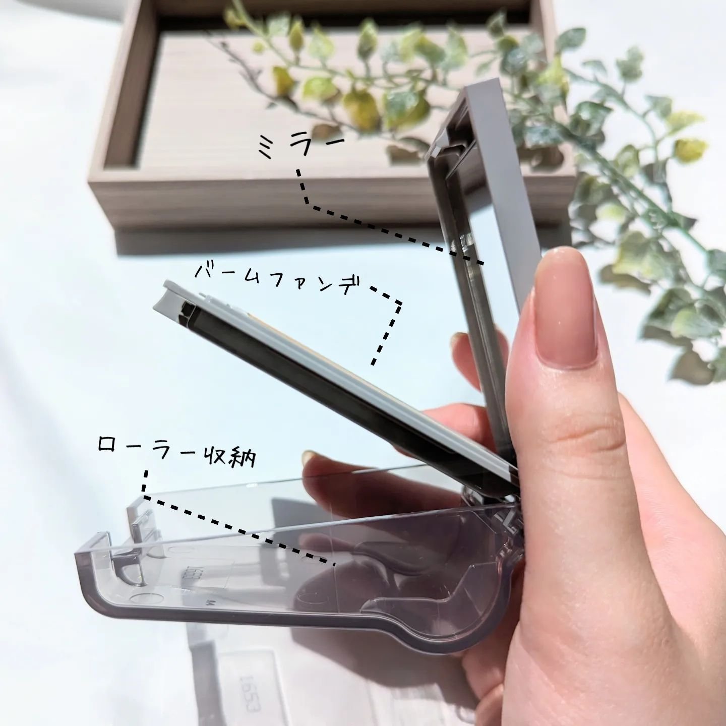ローラーで付けるバーム状美容液ファンデーションです✨ 大人ピンクが素敵な厚みのあるコンパクトケースで、ローラーが収納出来ます✨ コロコロとファンデーションを肌に付けてみると、とてもなめらかに均一にのせることができて、ムラなく綺麗に仕上がりました✨ しっとりとした使用感です✨ スキンケア後、化粧下地なしでもなめらかな仕上がり ⭐️皮脂固化パウダー配合 ⭐️長時間保湿感が持続します