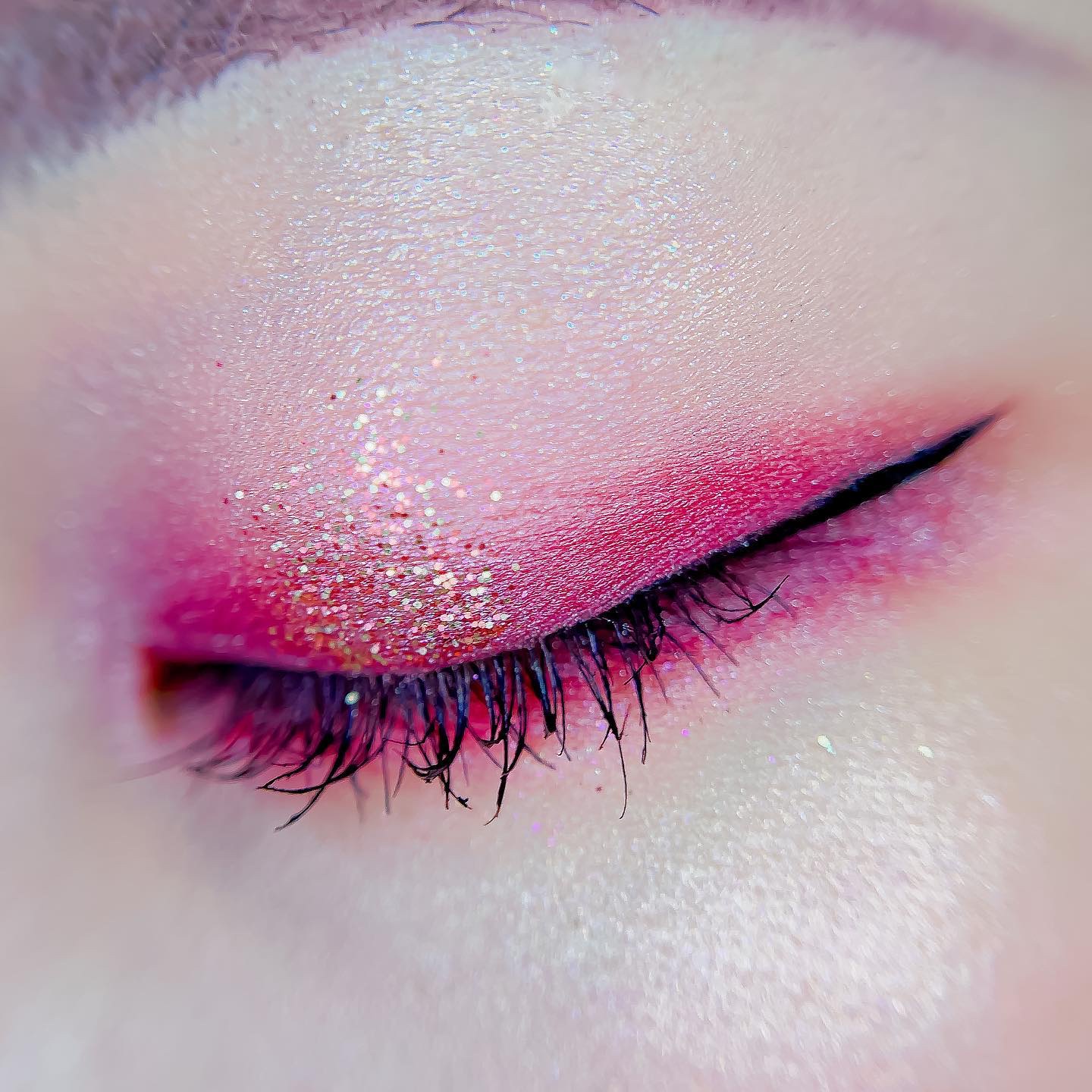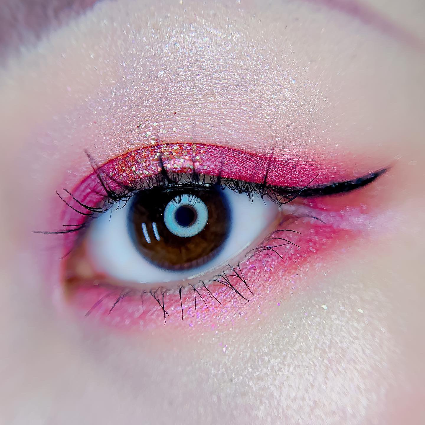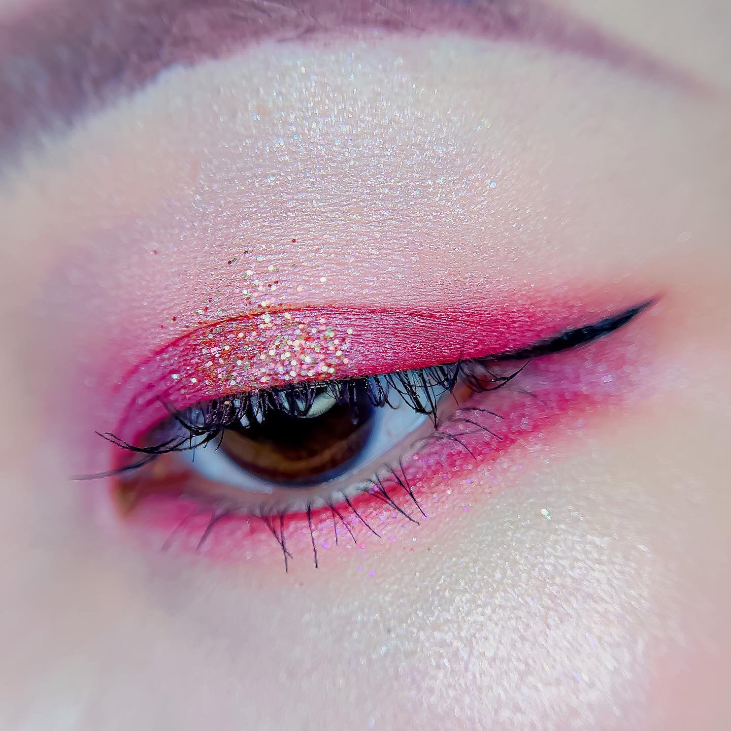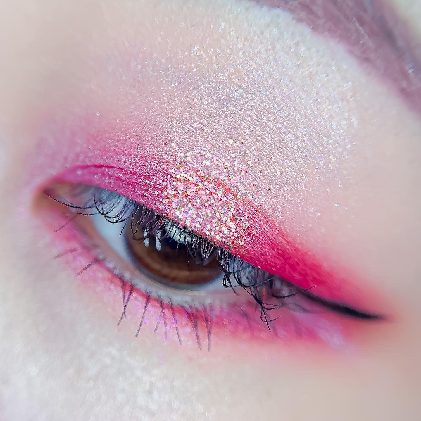 ピンクにグレージュも良いですね👌💗 今日は可愛らしい感じにしてみました💕 上下瞼黒目〜目頭側にラメを塗ってキラキラさせております🤩 目尻はマットのピンクを濃いめに重ねて💗 グレージュのアイライナーと相性◎
