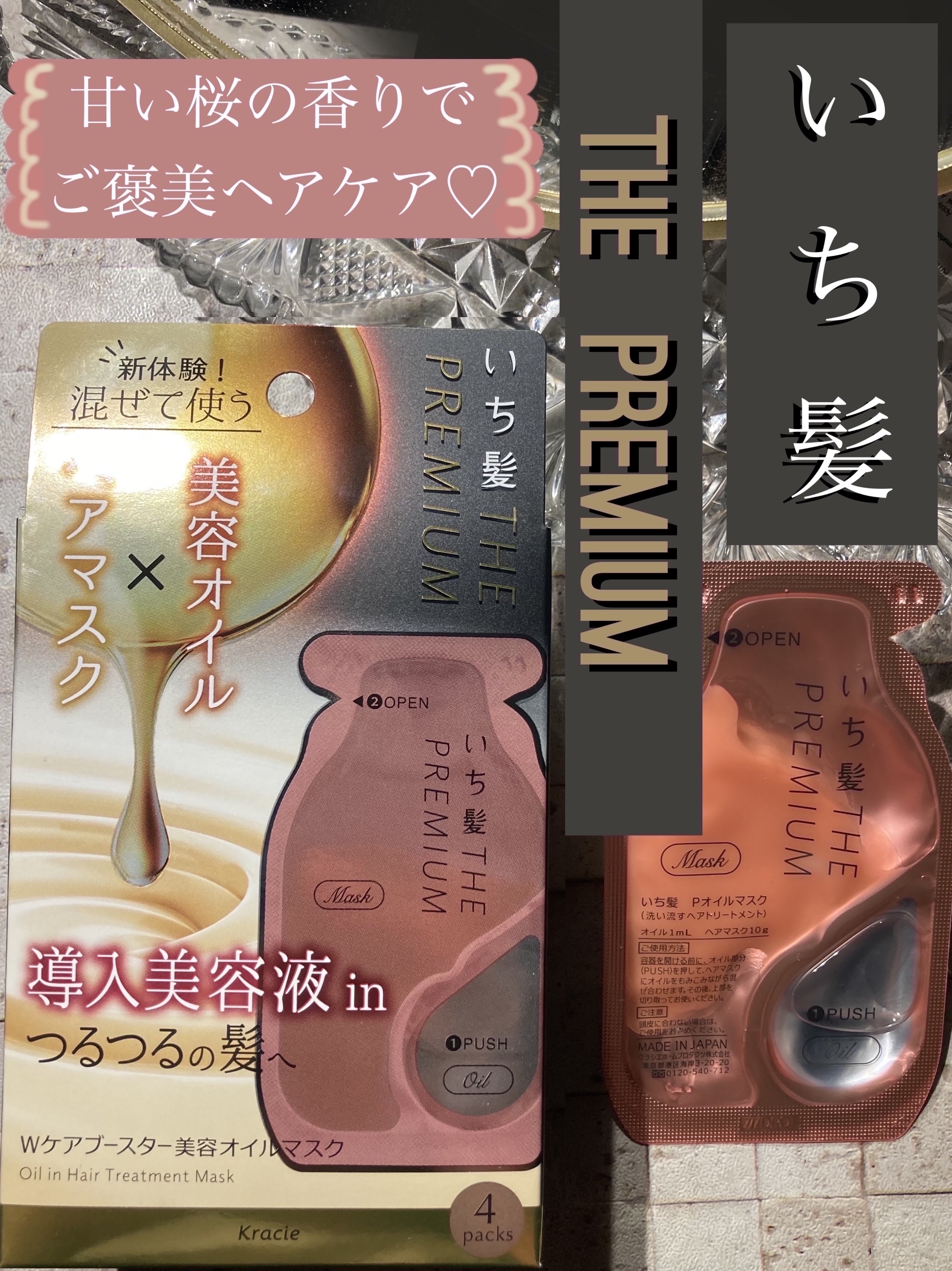 - ●「日本の髪を本質から考える。*1」ヘアケアブランド ●日本の髪研究の成果。アイロン等の熱ダメージによる乾燥髪のためのプレミアムダメージケアシリーズ ●今まで体験したことのない*2美容オイルを注入、混ぜるヘアマスク(洗い流すトリートメント) ●手触り、感動的。集中補修×オイルコートで、ヘアマスクとも、ヘアオイルとも違う体験で、つるんとした髪へ。 ●髪内部と外側をWでケアする「プレミアムWリペアシステム」 ・集中補修成分「高濃度*3米ぬか発酵導入美容液*4」配合のヘアマスクで、髪の内部を補修 ・指通りUP成分「和草・導入美容オイル*5」とドライヤーの熱を味方にキューティクルを密着する「ヒートリペアコート成分*6」で、髪の外側をコートして指通りをアップ ●つややかな八重桜の香り(天然桜エッセンス配合香料) ●サルフェートフリー(硫酸系界面活性剤不使用) ●合成着色料フリー *1:日本の風土や気候などの環境に合わせたヘアケア方法を研究しています。 *2:いち髪ブランド内 *3:いち髪 THE PREMIUM エクストラダメージケアトリートメント(シャイニーモイスト)比 *4:米ぬか発酵液、ハス種子発酵液、酒粕エキス、セバシン酸ジエチル、グリセリン *5:米胚芽油、オリザノール、セバシン酸ジエチル *6: γ-ドコサラクトン