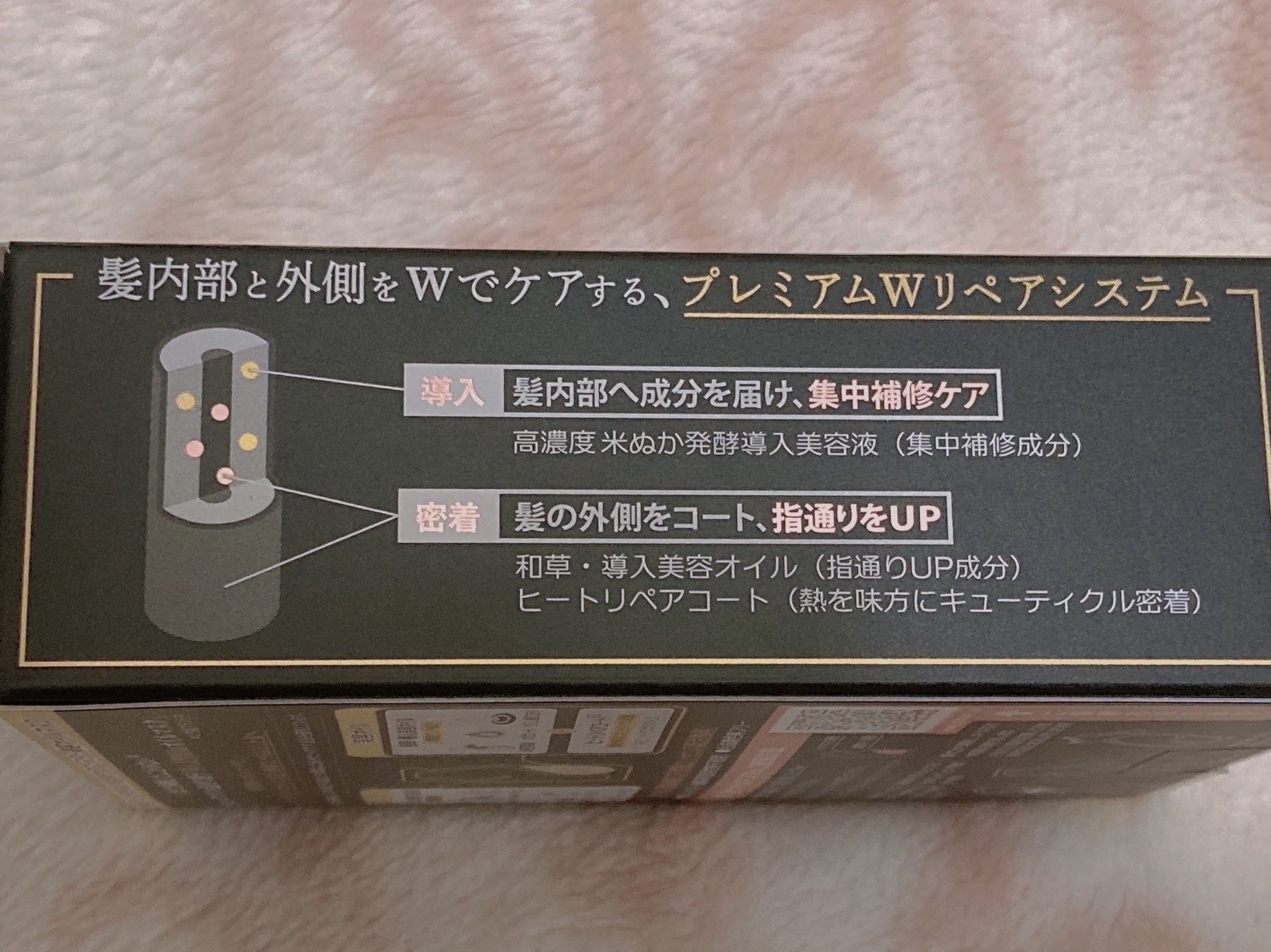 - ●「日本の髪を本質から考える。*1」ヘアケアブランド ●日本の髪研究の成果。アイロン等の熱ダメージによる乾燥髪のためのプレミアムダメージケアシリーズ ●今まで体験したことのない*2美容オイルを注入、混ぜるヘアマスク(洗い流すトリートメント) ●手触り、感動的。集中補修×オイルコートで、ヘアマスクとも、ヘアオイルとも違う体験で、つるんとした髪へ。 ●髪内部と外側をWでケアする「プレミアムWリペアシステム」 ・集中補修成分「高濃度*3米ぬか発酵導入美容液*4」配合のヘアマスクで、髪の内部を補修 ・指通りUP成分「和草・導入美容オイル*5」とドライヤーの熱を味方にキューティクルを密着する「ヒートリペアコート成分*6」で、髪の外側をコートして指通りをアップ ●つややかな八重桜の香り(天然桜エッセンス配合香料) ●サルフェートフリー(硫酸系界面活性剤不使用) ●合成着色料フリー *1:日本の風土や気候などの環境に合わせたヘアケア方法を研究しています。 *2:いち髪ブランド内 *3:いち髪 THE PREMIUM エクストラダメージケアトリートメント(シャイニーモイスト)比 *4:米ぬか発酵液、ハス種子発酵液、酒粕エキス、セバシン酸ジエチル、グリセリン *5:米胚芽油、オリザノール、セバシン酸ジエチル *6: γ-ドコサラクトン