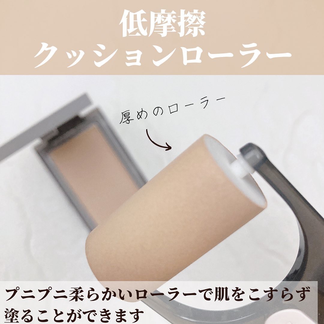 ローラーで付けるバーム状美容液ファンデーションです✨ 大人ピンクが素敵な厚みのあるコンパクトケースで、ローラーが収納出来ます✨ コロコロとファンデーションを肌に付けてみると、とてもなめらかに均一にのせることができて、ムラなく綺麗に仕上がりました✨ しっとりとした使用感です✨ スキンケア後、化粧下地なしでもなめらかな仕上がり ⭐️皮脂固化パウダー配合 ⭐️長時間保湿感が持続します