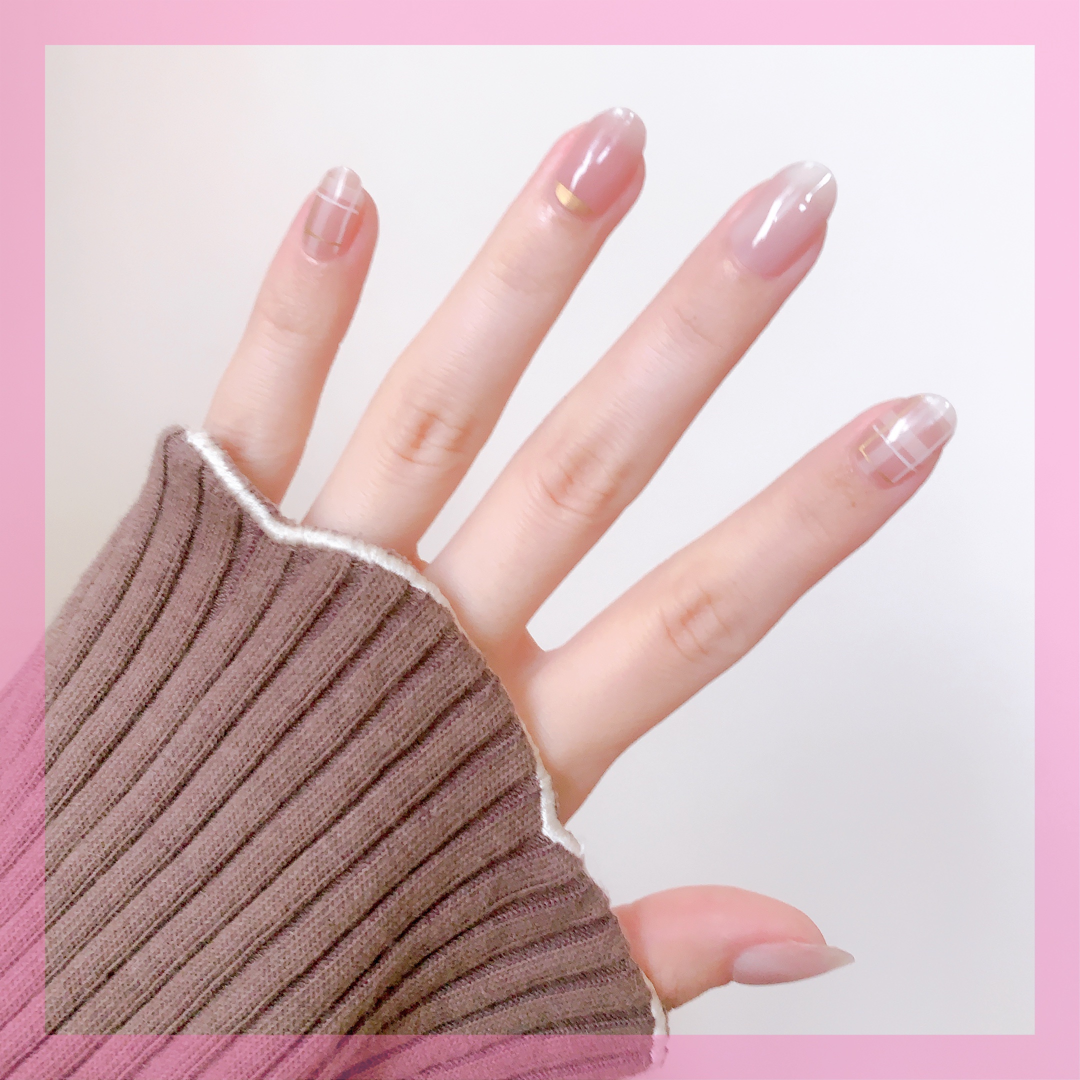 ■ohoraohoraネイルシールサロン級の仕上がりが貼って固めるだけで完成✨種類がたくさんあって、秋ネイルにもぴったり🍂・ND-049JNCoyCheckスモーキーなピンクがベースになった落ち着いた印象をつくる大人のチェックネイル・NB-0...