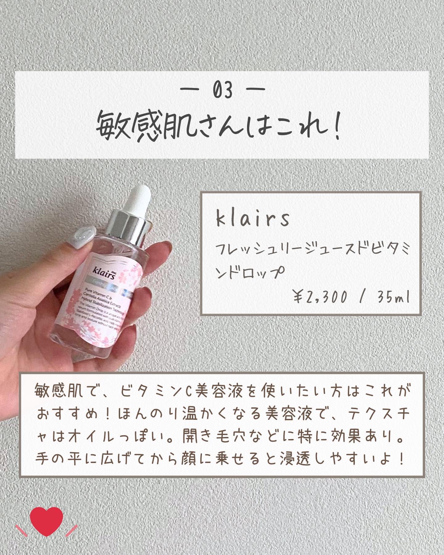 Klairs フレッシュリージュースドビタミンドロップ(35ml) | 2,300円 |