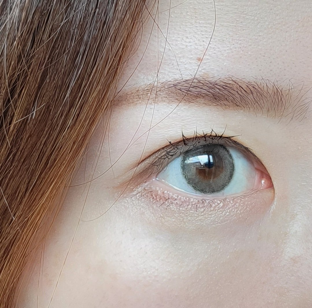 極小ドットとトーンアップカラーのコラボがかわいい! わたしがお試しした Ash Brown は薄めのブラック&アッシュカラーでほどよくツヤ感のある瞳を演出✨ 細フチとくすみカラーのコラボがなんだかおしゃれ🩷 わたしがお試ししたNude Brown はグレーとグリーンベース🩶 1日中つけてても瞳の乾燥気にならなかったし、1dayだから洗浄の必要もなく、清潔に使えて良かったです☺️