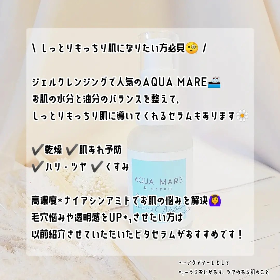 - コンセプトは『海』 AQUAMAREは生体に適した、ミネラルバランスを持つ海由来の成分を中心に作りました。 アクアプラセンタ*1、海洋深層水*1、海藻エキス*1、高濃度*2ナイアシンアミド*1配合、乾燥ケア、ハリ、肌荒れ予防の集中美容液。 *1保湿成分 *2アクアマーレとして