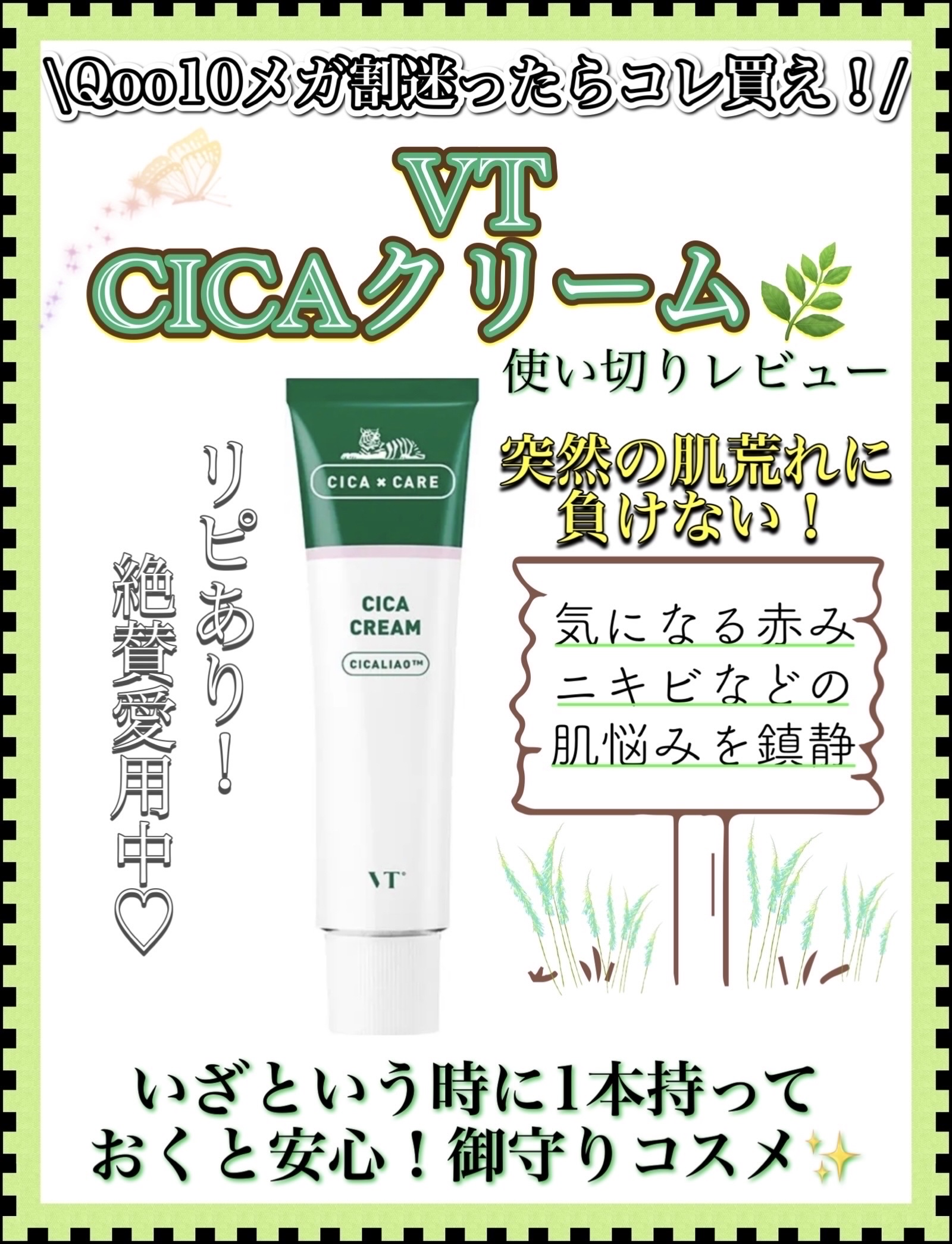 Qoo10メガ割でリピートする、使い切りコスメ。みんなの大定番。シカクリーム。グリーンのジェル状クリームで、肌荒れ時、季節の変わり目などで肌が揺らいでいるタイミングで本当にお世話になりました。肌が弱いので、どうしても季節の変わり目には肌の...