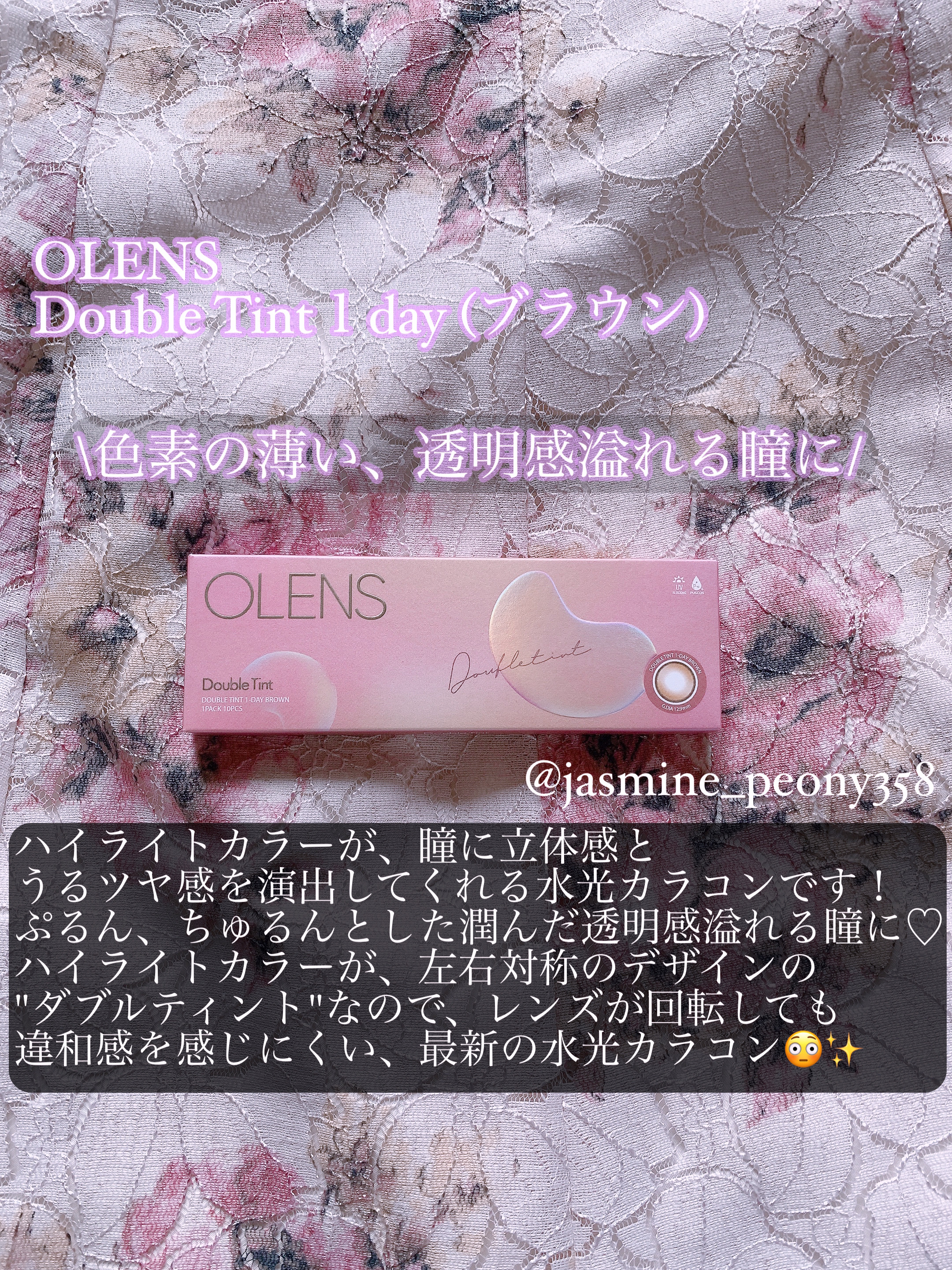 - ■OLENS Double Tint(オーレンズダブルティント) 韓国カラコン業界の話題のブランド『OLENS(オーレンズ)』の日本正式承認商品シリーズ。世界中から注目を浴びるグループ「NewJeans (ニュージーンズ)」がイメージモデル。トレンドのハイライトカラーがダブルになっているので、装用中レンズが回転しても違和感を感じにくく使用できる最新の水光カラコン。ハイライトカラーが瞳に立体感とうるツヤ感を演出してくれます! ■使い方 コンタクトレンズは高度管理医療機器です。必ず眼科医の処方に従って購入してください。 ■使用上の留意事項 コンタクトレンズは高度管理医療機器です。眼科医の指導に従い装用期間を厳守し、正しくお使いください。眼の定期検査を必ず受けてください。添付文書を必ず読み、取扱方法、装用時間を守って正しくお使いください。少しでも異常を感じたら、直ちに眼科医の検査を受けてください。
