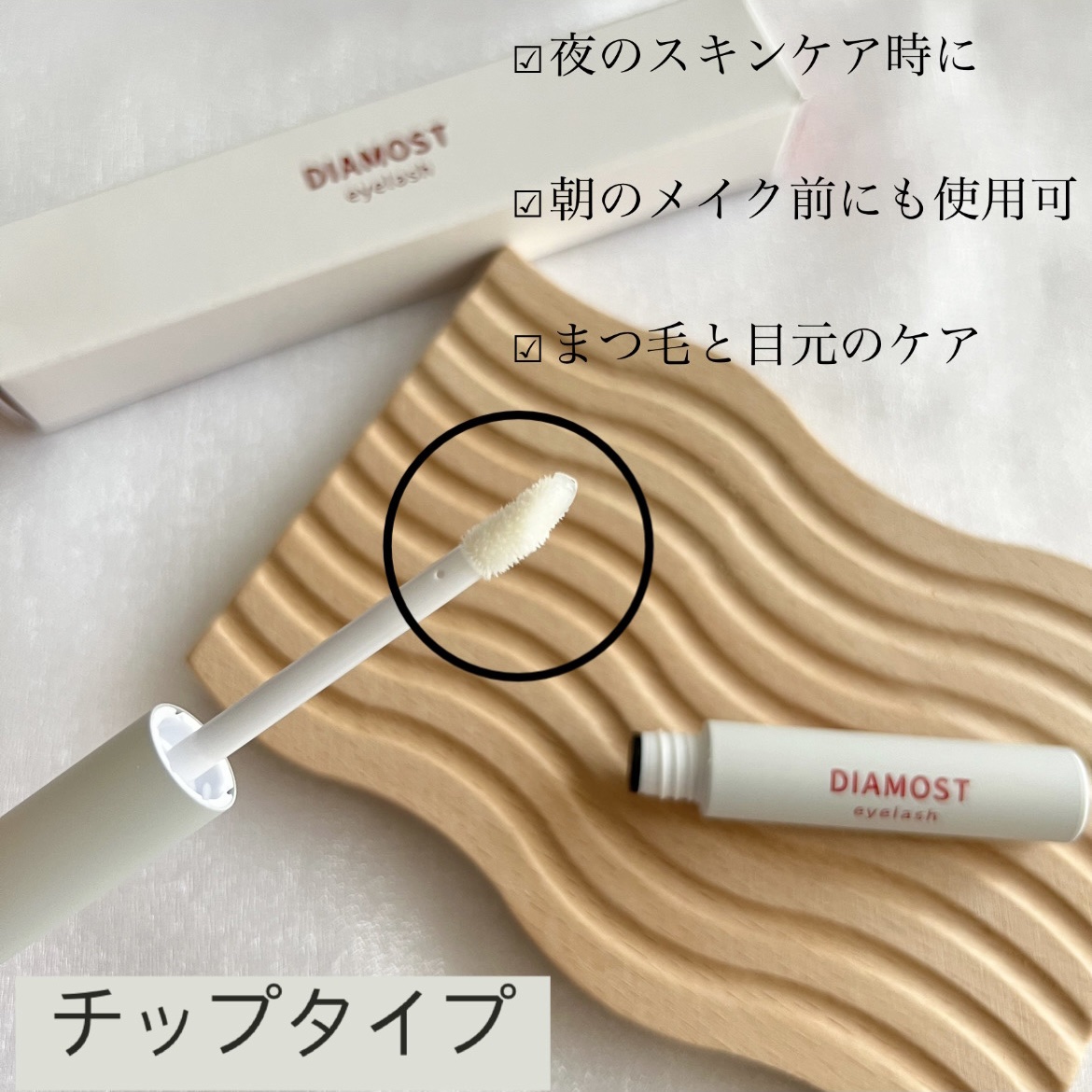 | まつ毛と目元に使いやすいように研究を重ねたオリジナルチップで、絶妙に目元にフィットするからとっても塗りやすい! | 詳細を見る | ||