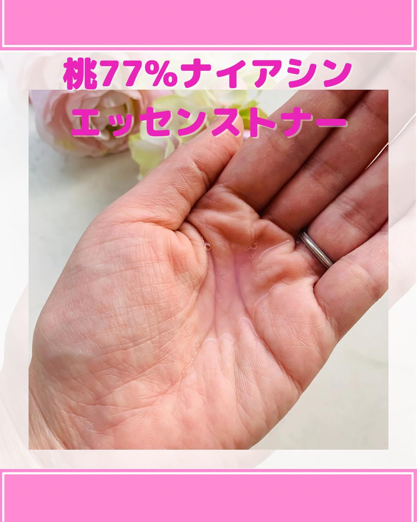 少しとろみのあるテクスチャー べたつかき感なくてスッと肌になじんで肌を保湿してくれるので朝のスキンケアにも使いやすかったです ほんのり桃の香りがするのですが結構お気に入りでよくコットンパックとして使うくらい 桃に含まれたナイアシンアミド、ポリフェノール、ミネラル、ビタミンA,B,C成分が肌に水分と栄養を与え基礎肌力をアップ