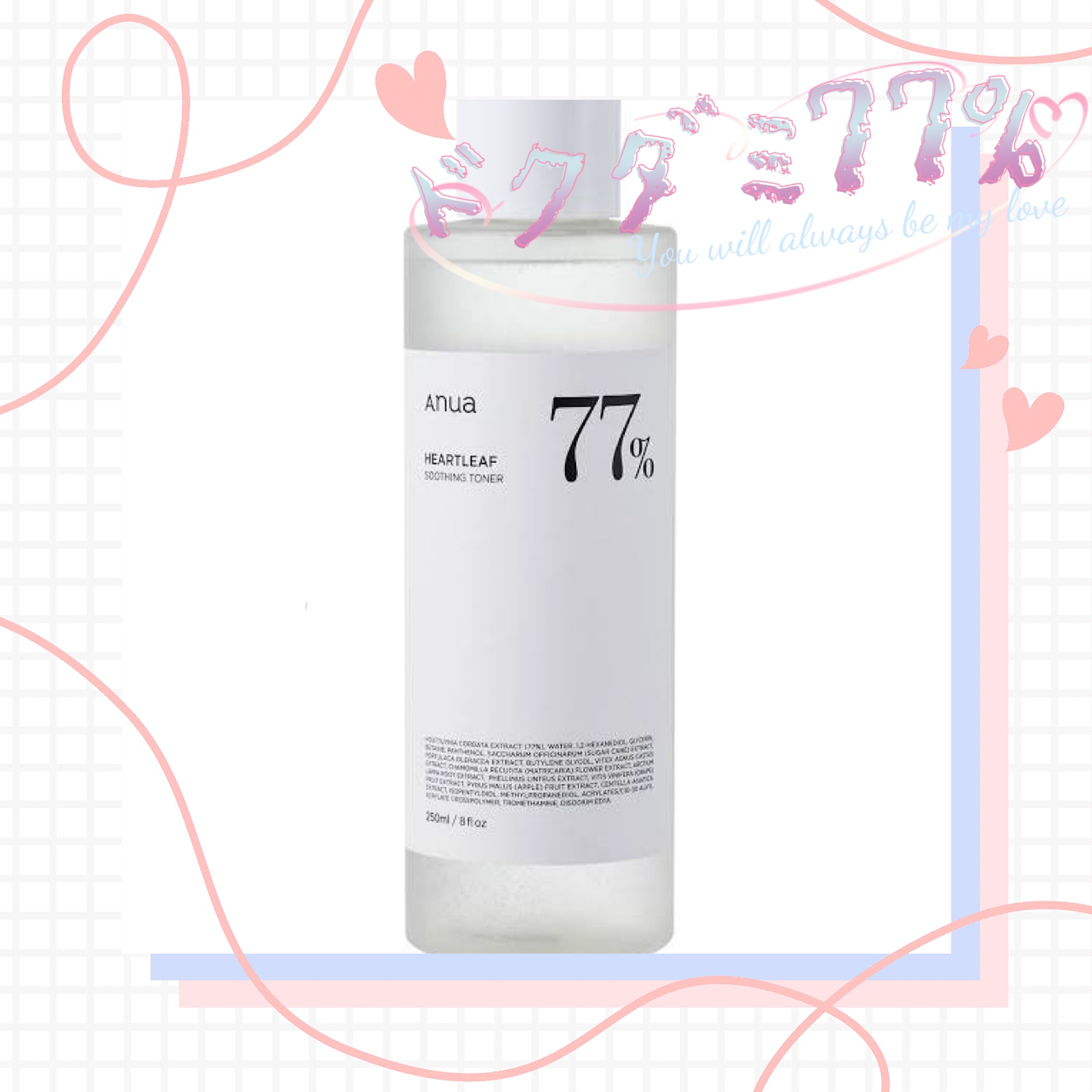 - <250ml> ヒアルロン酸Na、ダイソジウムEDTA、サトウキビエキスエキス、ブドウエキス、ヒアルロン酸Naクロスポリマー、ヒアルロン酸K、トロメタミン、リンゴ果実エキス、(アクリレーツ/アクリル酸アルキル(C10-30))クロスポリマー、セイヨウニンジンボク果実エキス、ヒアルロン酸ヒドロキシプロピルトリモニウム、アセチルヒアルロン酸Na、ヒアルロン酸、ドクダミエキス、加水分解ヒアルロン酸 <I.CINNAMOROLLコラボデザイン(250ml)> ドクダミ花/葉/茎水(77%)、水、1,2-ヘキサンジオール、グリセリン、ベタイン、BG、イソペンチルジオール、パンテノール、(アクリレーツ/アクリル酸アルキル(C10-30))クロスポリマー、トロメタミン、ツボクサエキス、ゴボウ根エキス、メシマコブエキス、スベリヒユエキス、カミツレ花エキス、セイヨウニンジンボク果実エキス、ヒアルロン酸Na、ヒアルロン酸ヒドロキシプロピルトリモニウム、アセチルヒアルロン酸Na、加水分解ヒアルロン酸、ヒアルロン酸、ヒアルロン酸クロスポリマーNa、ヒアルロン酸K、EDTA-2Na <『たまごっち』デザイン(250ml)> ヒアルロン酸Na、加水分解ヒアルロン酸、ドクダミエキス、ヒアルロン酸、アセチルヒアルロン酸Na、ヒアルロン酸ヒドロキシプロピルトリモニウム、セイヨウニンジンボク果実エキス、(アクリレーツ/アクリル酸アルキル(C10-30))クロスポリマー、リンゴ果実エキス、トロメタミン、ヒアルロン酸K、ヒアルロン酸Naクロスポリマー、ブドウエキス、サトウキビエキスエキス、ダイソジウムEDTA <『パワーパフ ガールズ』デザイン(250ml)> ヒアルロン酸Na、加水分解ヒアルロン酸、ドクダミエキス、ヒアルロン酸、アセチルヒアルロン酸Na、ヒアルロン酸ヒドロキシプロピルトリモニウム、セイヨウニンジンボク果実エキス、(アクリレーツ/アクリル酸アルキル(C10-30))クロスポリマー、リンゴ果実エキス、トロメタミン、ヒアルロン酸K、ヒアルロン酸Naクロスポリマー、ブドウエキス、サトウキビエキスエキス、ダイソジウムEDTA
