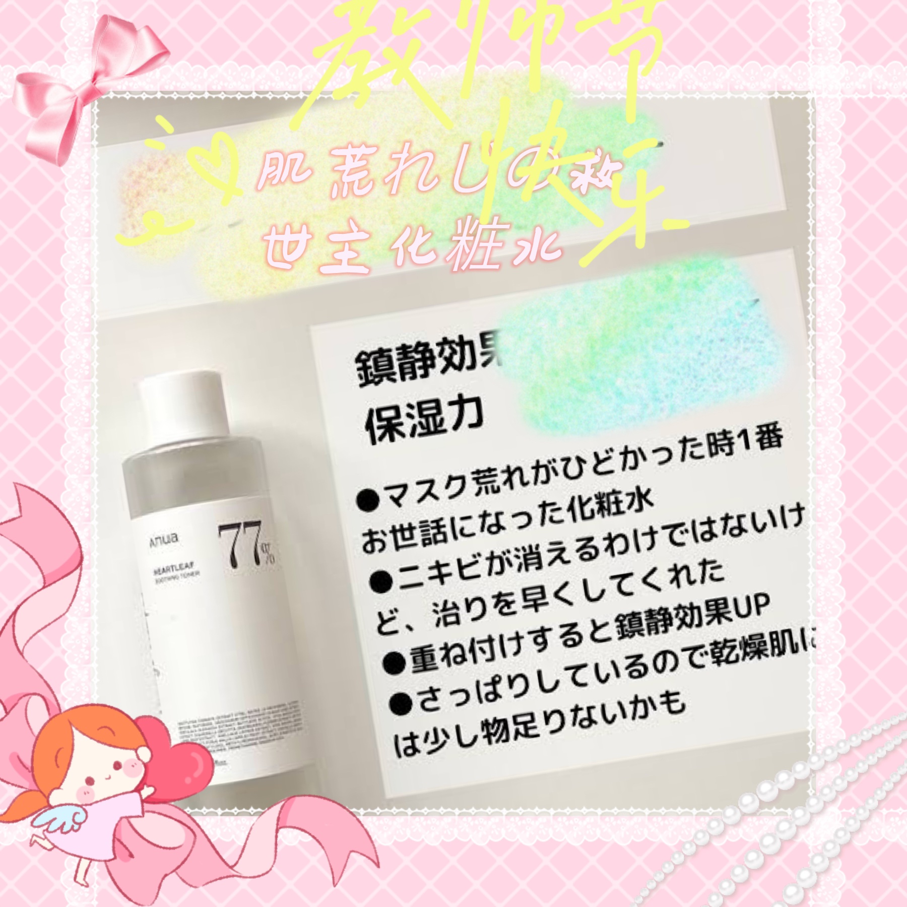 韓国のスキンケアブランドAnua✨️ この、Anuaドクダミ77 スージングトナーは、ドクダミエキスを77%含有しているトナーで、ドクダミは、抗炎症作用や鎮静効果があり、敏感肌やトラブル肌のケアに適しています!!! 本当に鎮静効果が強い。肌が落ち着いてくれる! 肌の鎮静・冷却効果、炎症を抑えてくれる効果があるから、紫外線の時期にも助かるし、水分補給・保湿効果もじゅうぶんだから、乾燥する季節にもぴったり! 特に敏感肌や肌荒れ、ニキビが気になる方におすすめのトナーです。