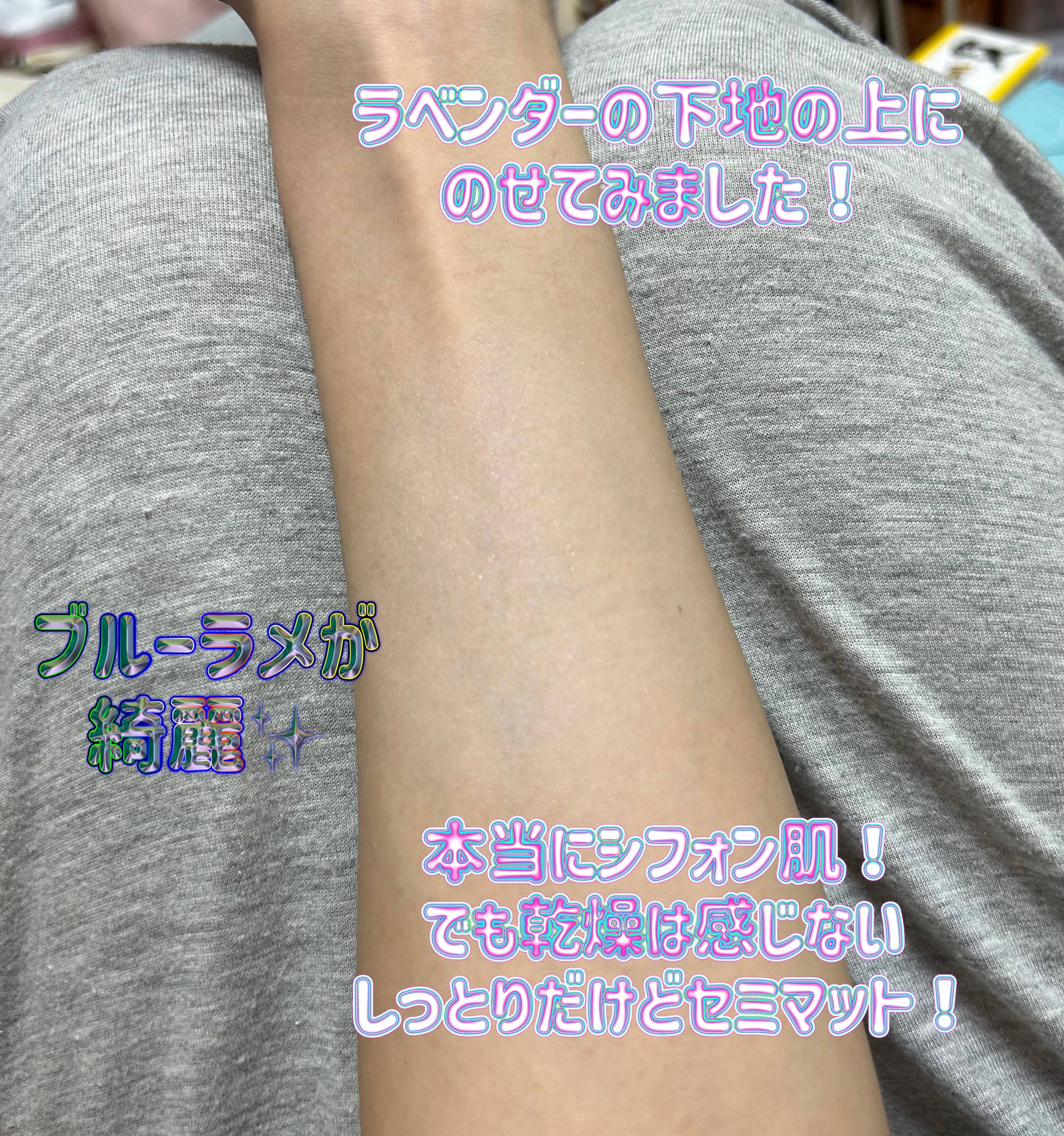 テクスチャーですが、美容液89%配合なのでかなり伸びが良くスキンケアの延長線の感覚で使えて使い心地はかなり良く塗ってる感もなくベタつきも重さもなくストレスフリーでした❣️ SPF48、PA +++でブルーライトカットなので紫外線対策もバッチリオッケーです🙆♀️✨ こちら美容液、化粧下地、ライトファンデーションの役割があるそうなのです。私はこちら一本で十分に綺麗に見せてくれるので仕上げにパウダーを叩くだけで化粧が完了します( ੭ ˙ᗜ˙ )੭🎵 色味に関しては、かなり色白なのですが浮くことなく綺麗な素肌感に仕上がりました❣️ 肌に塗って鏡で見ると肌が内側から光っているように見えてすごく肌が綺麗に見えました! マスクで1日過ごして外に出かけましたが特にひどい崩れもなく、化粧直しも少し浮いてきた油を油取り紙でちゃちゃっと拭けばしっかり治りました🙆♀️