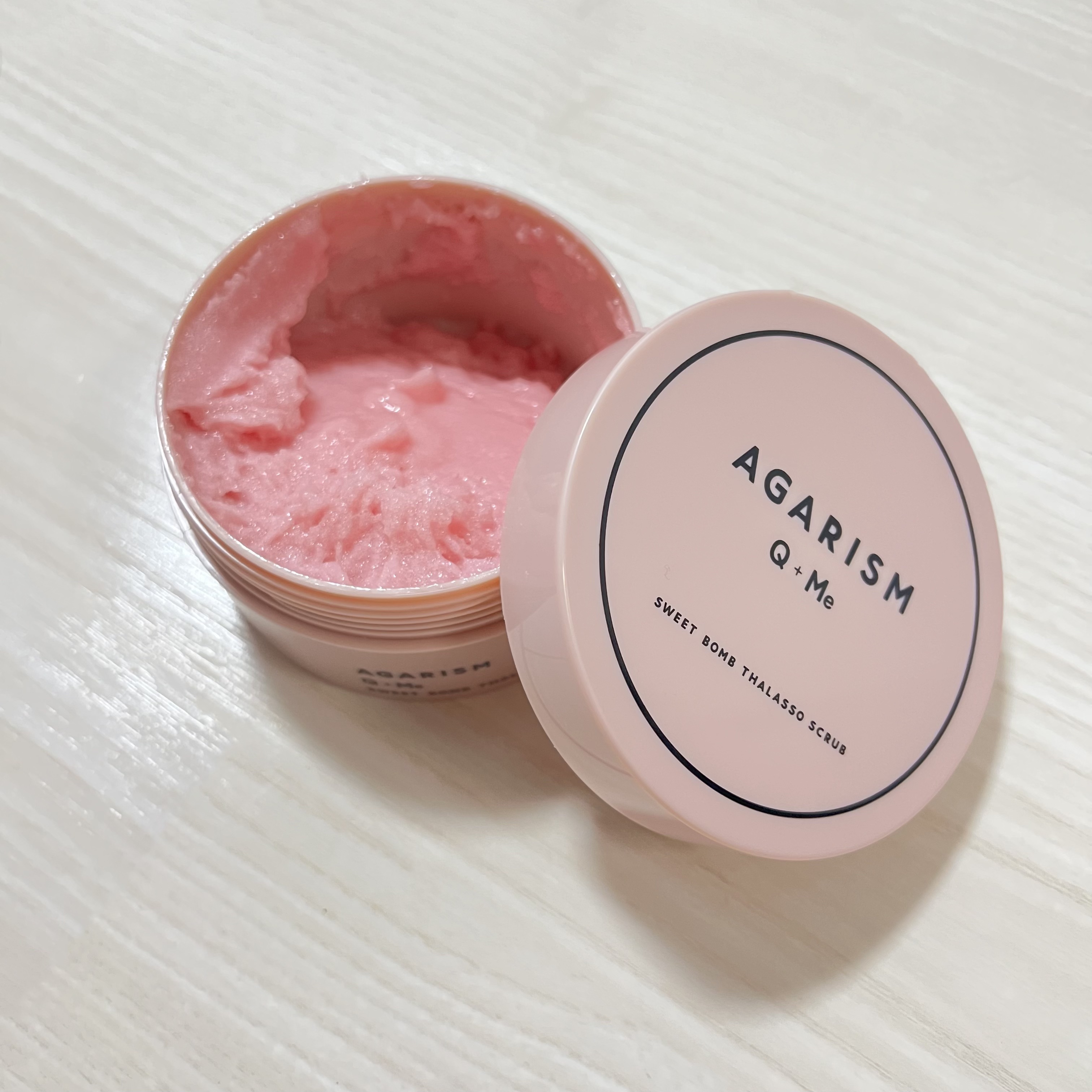 香りが大好きリピ確定してるスクラブ! 🩷AGARISM Q+Meスイートボムタラソスクラブ 甘くてクセになる香り🥺 この香りのボディクリームや香水があったら使いたいくらいに好き❣️ ざらつきにアプローチして、つるつるスベスベのお肌に✨ 毎日使えるのも嬉しい〜💓