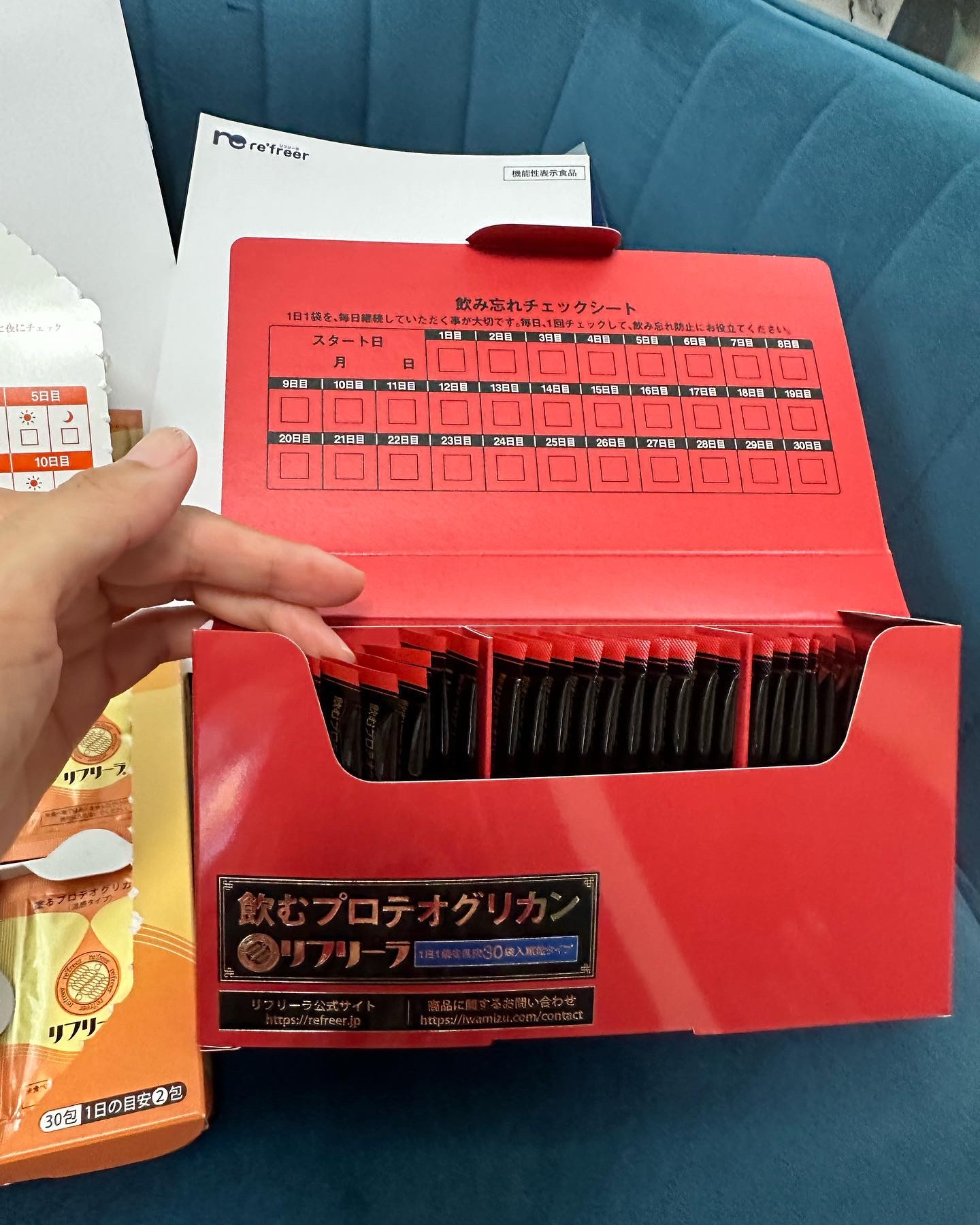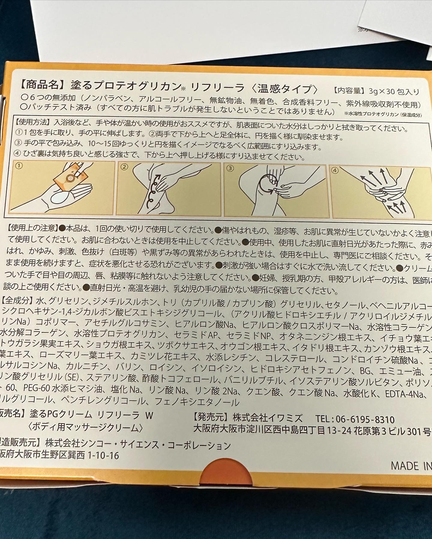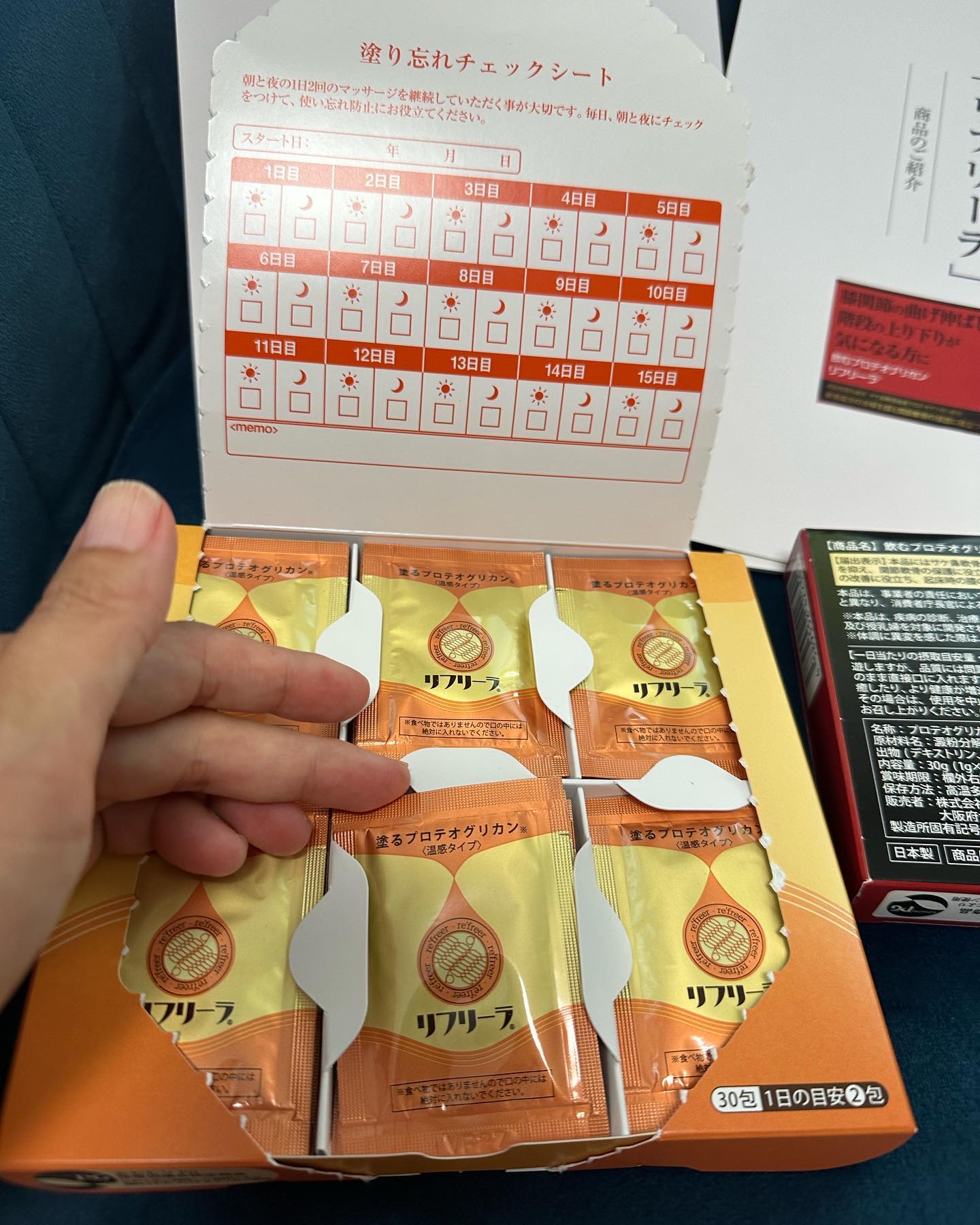 中身は白くてサラサラした粉で、好きな飲み物等と混ぜて飲むみたいですが、味を知りたかったので水と混ぜてみた。 飲んでみると味は全然!なんにもわからないので普通にお水みたいにも飲めるし、好きなジュースとかと混ぜても良さそうでした。 膝にクルクル〜と塗っていきます。量は結構多めに入っているので、たっぷり両膝につけれるよ。 しっとりしたテクスチャーなので、乾燥しやすい膝には相性良さそうでした♩ 内側と外側、両方からアプローチできるのは嬉しい。一緒に使ってみたけど、どちらもストレスなく使えて面倒くさがりの私でも続けられそうでした♡