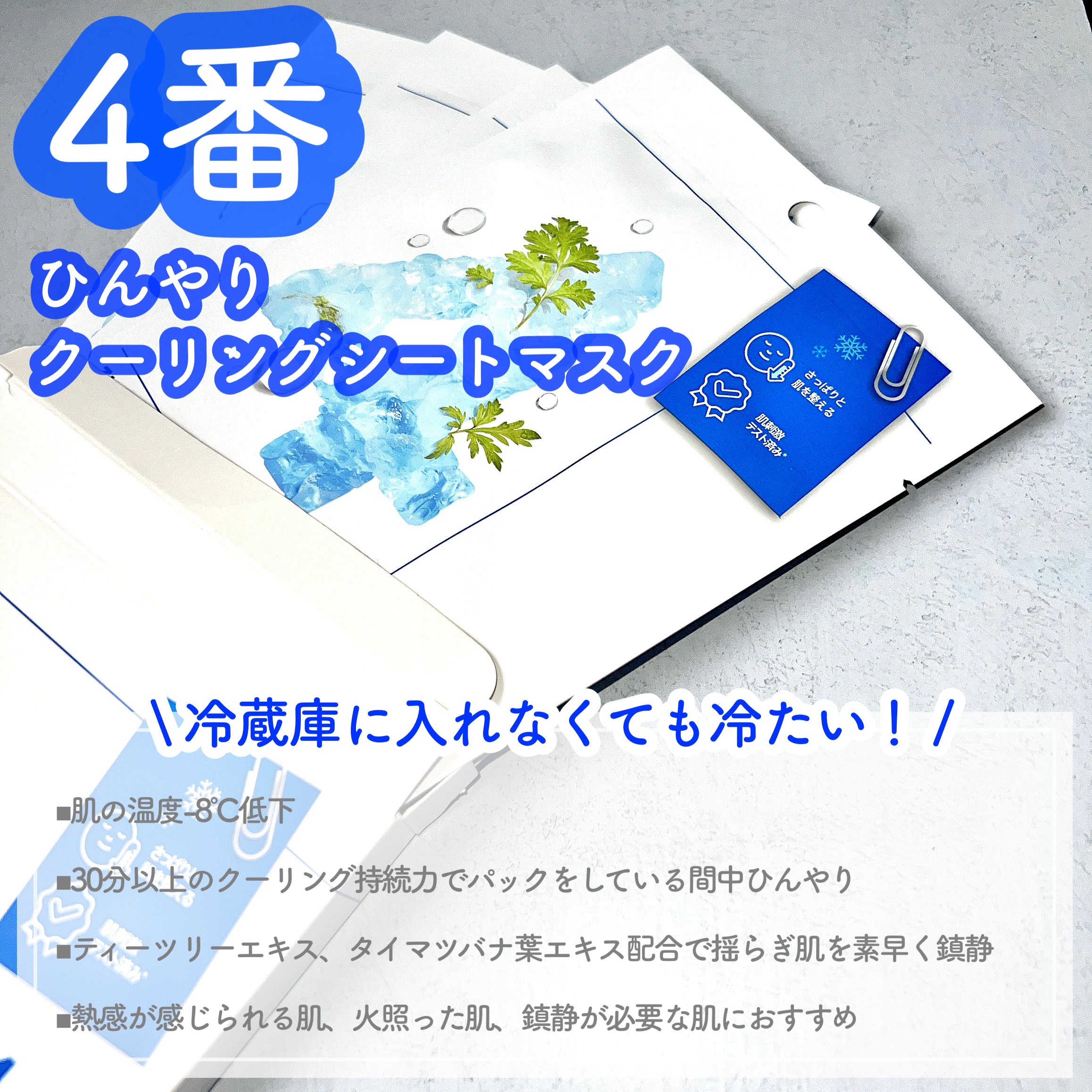#numbuzin#4番#ひんやりクーリングシートマスク#ナンバーズイン#ナンバーズイン4番冷蔵庫から取り出したかのようなひやっとした#冷感で#ヨモギ入りの#シートがトラブル寸前のお肌をなだめる#鎮静#シートマスクまず開けた時に見たこともない...
