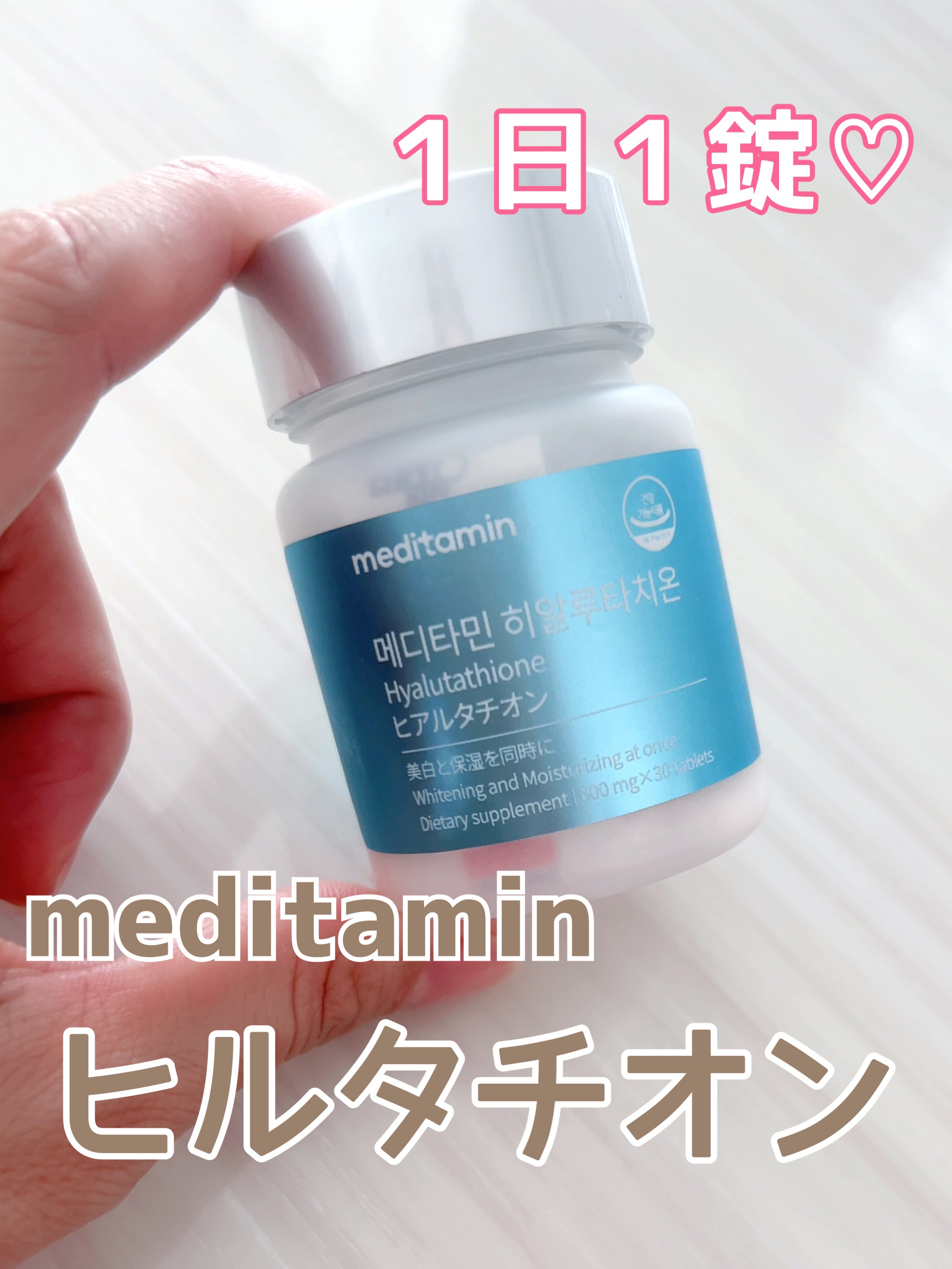 1日1粒ズボラでも続けやすいお手軽サプリ💓 メディタミン ヒアルタチオン 🤍ヒアルロン酸、グルタチオン、NMN。 🤍ビタミンC、Lーシスチン、エラスチン、コラーゲン、ミルクセラミド、ドクダミエキス粉末まで配合🙌 韓国発の美容サプリ🇰🇷 約1ヶ月分なので容器はけっこう小さめ!