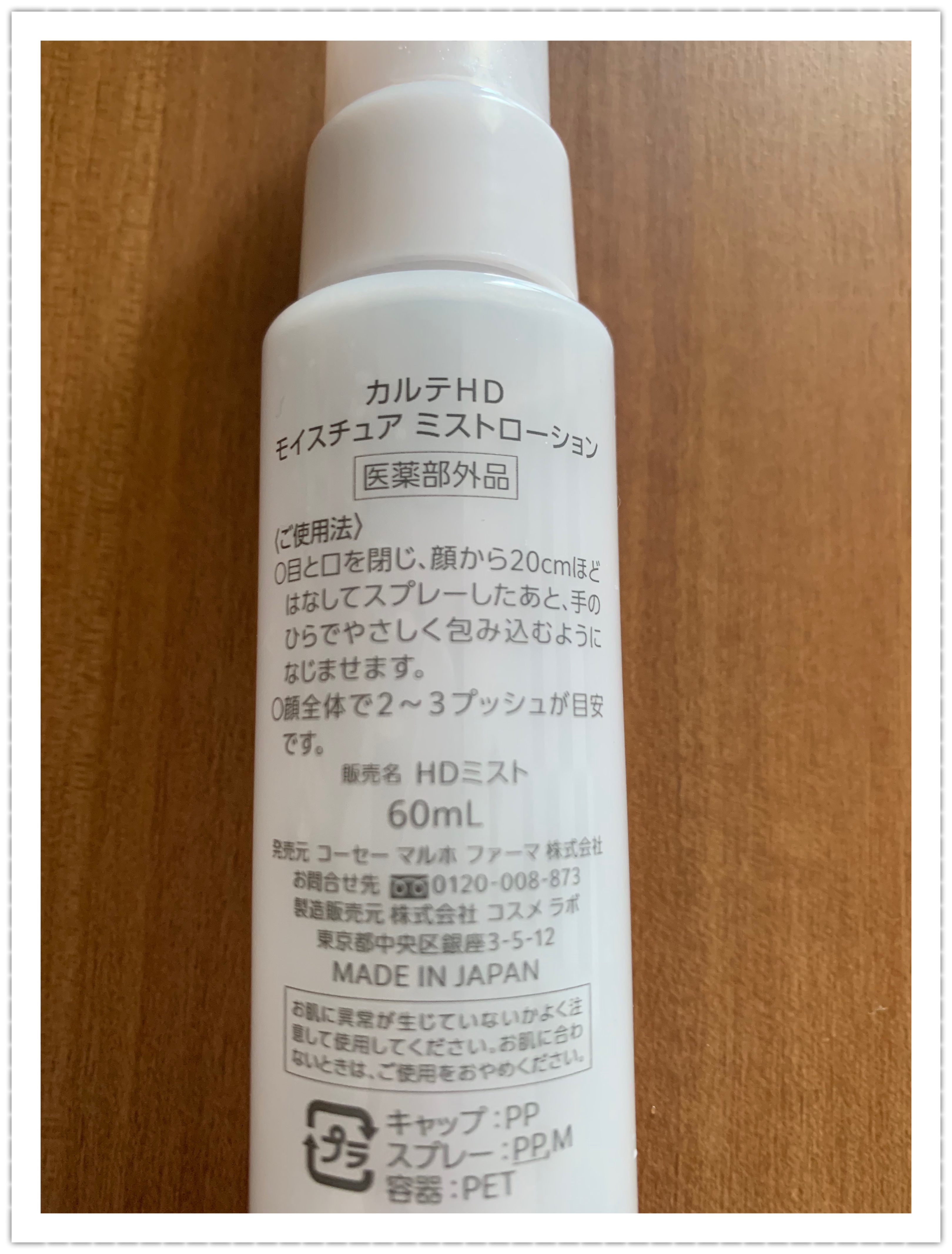- 【うるおいミスト化粧水】 信頼の保水有効成分「ヘパリン類似物質HD※」を配合したミスト化粧水です。 こだわったのは、いつでもどこでも快適にケアできる使い心地。シュッとひと吹きで粒子の細かいミストがふんわり肌を均一におおって、ベタつかず、すみずみまでみずみずしいうるおいをチャージ。 保水するだけでなく、肌のうるおい構造(角層ラメラ)に働きかけてバリア機能の回復をサポート。 コーセー自信の技術“うるおい浸透カプセル”を採用。使うたびにうるおいを角層深く届けてキメの整った肌へ。 携帯しやすくメイクの上からも使えるミストは、日中の肌あれ対策にも最適。手軽に本格的な保湿ケアが叶います。 ※ヘパリン類似物質のこと <販売名:HDミスト>