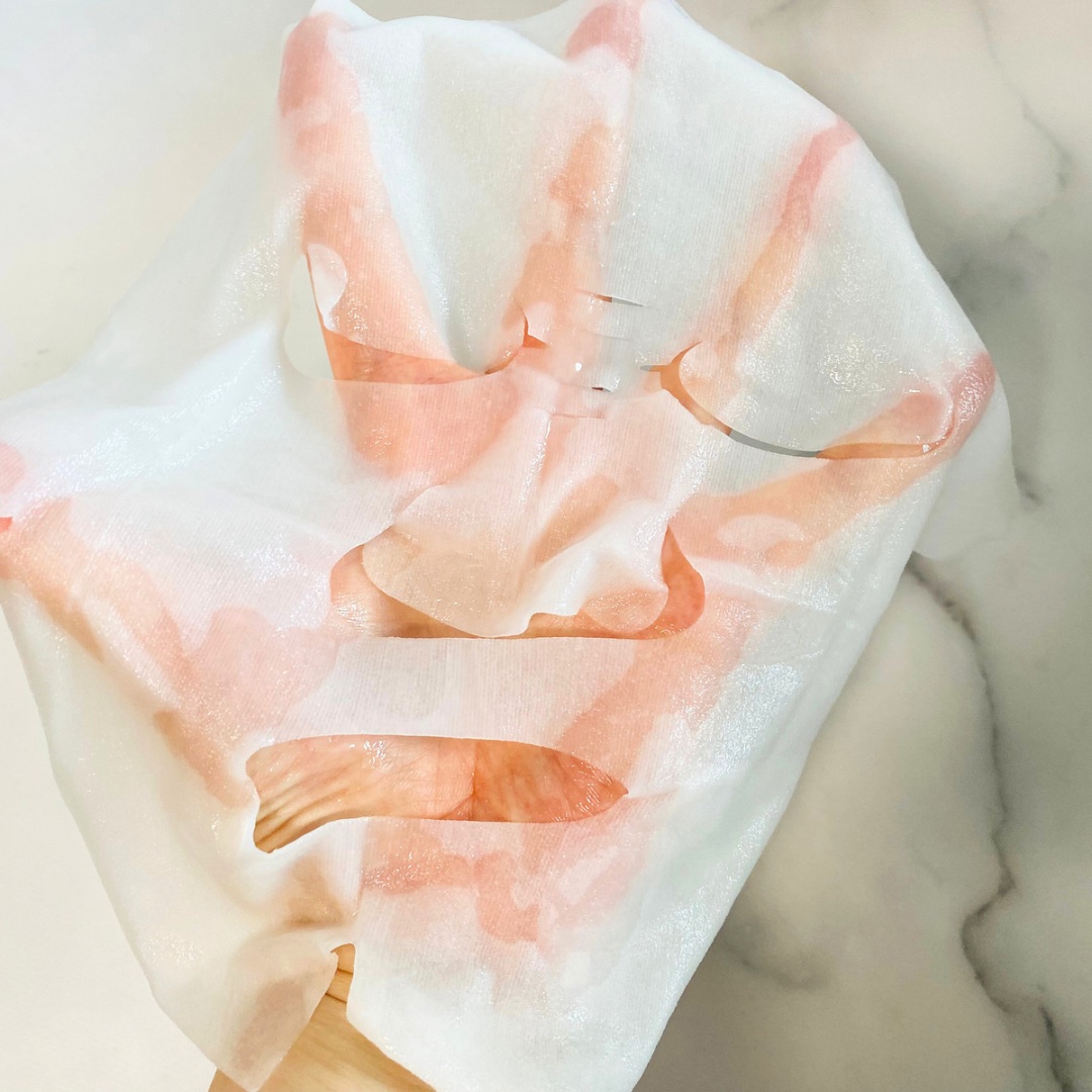 肌荒れを防ぐ消炎剤配合(有効成分) ✔️ セラミドの働きを補い、濃密な潤いをすみずみまで補給してくれるそう ✔️肌あたりやわらかなシートマスク 厚めのシートで肌あたりも良く、肌にピタッと密着してくれます。お肌が敏感な時でも優しい使い心地と、キメが整いもちっとする使用感がいいです。 マスクの下の部分は、切り離して小鼻等の隙間に貼れます。マスクのサイズによっては隙間ができるものもあるので、これも嬉しい。