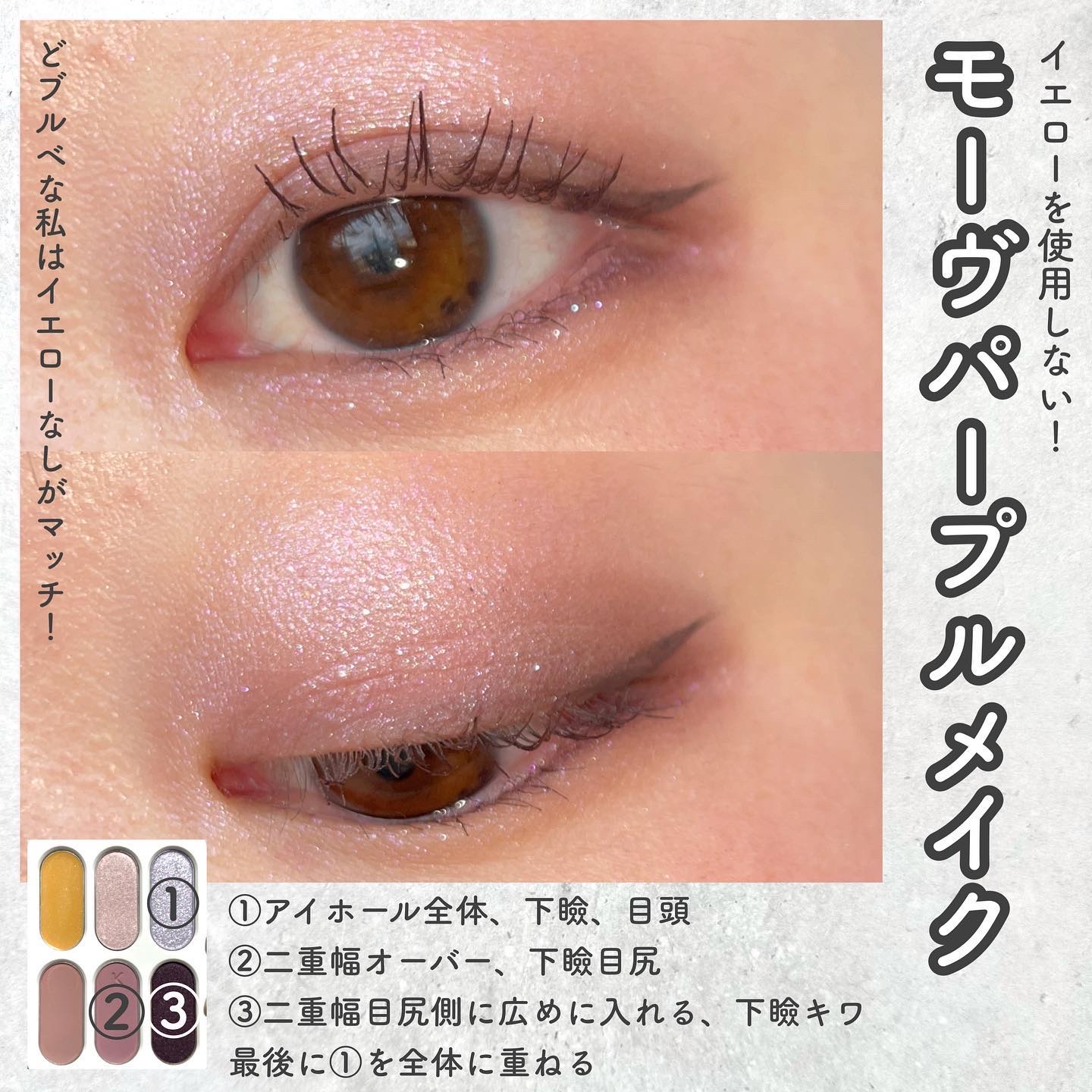 Lakaフォーエバー6アイパレット02 アテンションブルベ向け。全体的に紫がかった配色。④⑤のマットカラーは粉質が結構きめ細かいけどややパサパサしてる。似た粉質のウェイクメイクの16色パレットの方がしっとりしてる。①を使うとニュアンスチェンジ...