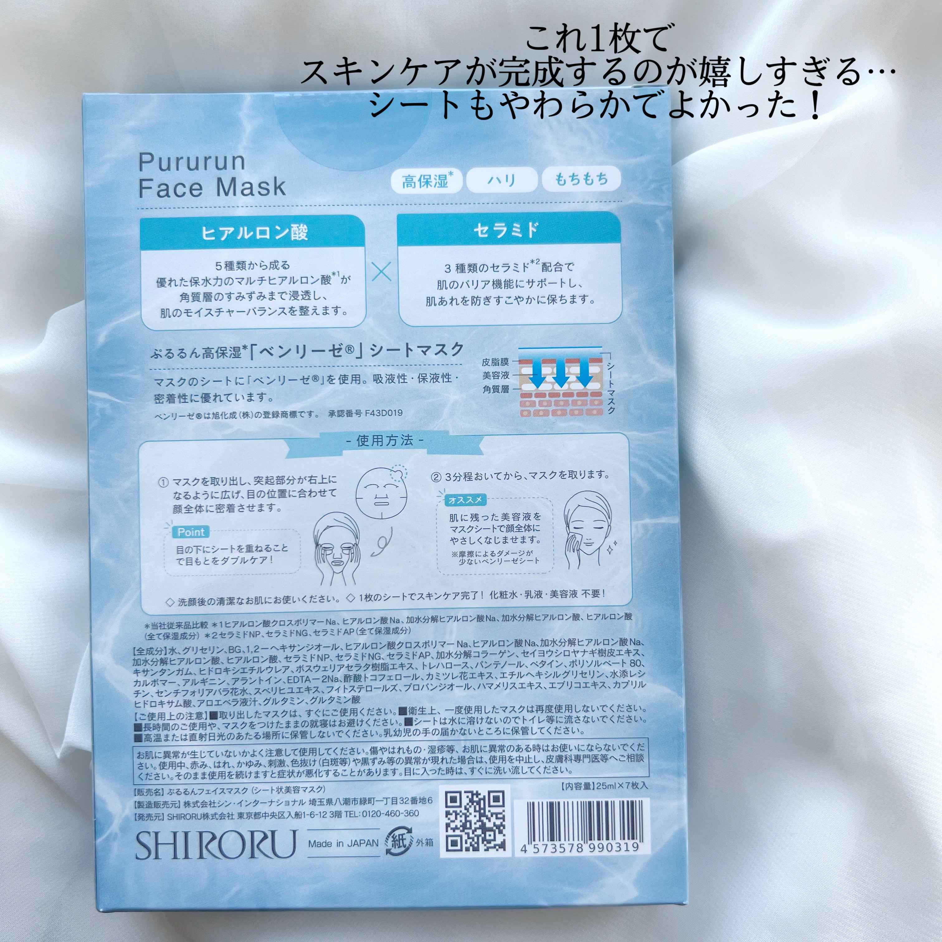 商品詳細情報SHIRORU ぷるるんフェイスマスク