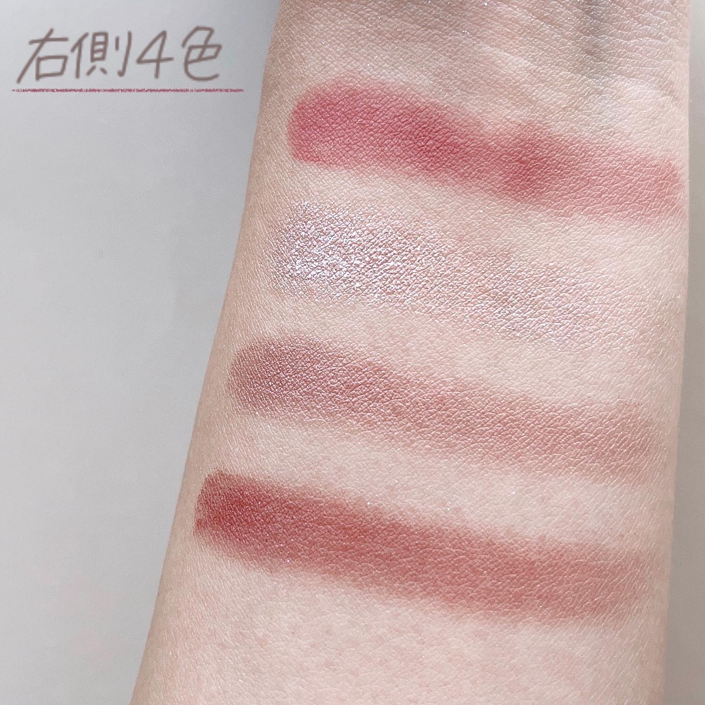 まるで春に咲く桜の木の下でゆっくりと飲むミルクティーのようなやわらかくやさしい色味。 パール感が強過ぎずほんのり艶っぽくみせてくれるパレットです。 色が濃くのりすぎないので、アイメイク初心者の方でも使いやすい配色、色味だなと感じました🤝🏻