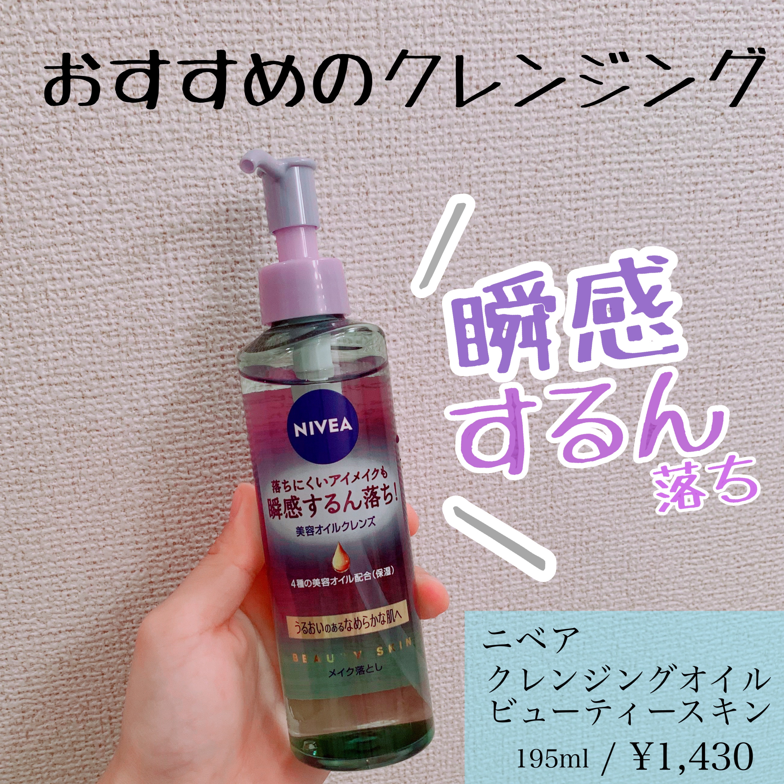 ニベア様から頂きました👑-ブランド:ニベア商品名:美容オイルクレンズビューティースキン参考価格:¥1155(税込)/195mlしっかりメイクも瞬感するん落ちクレンジング✨✅すすぎと同時に乳化する独自処方✅美容オイル配合で潤ったなめらか肌に導く...