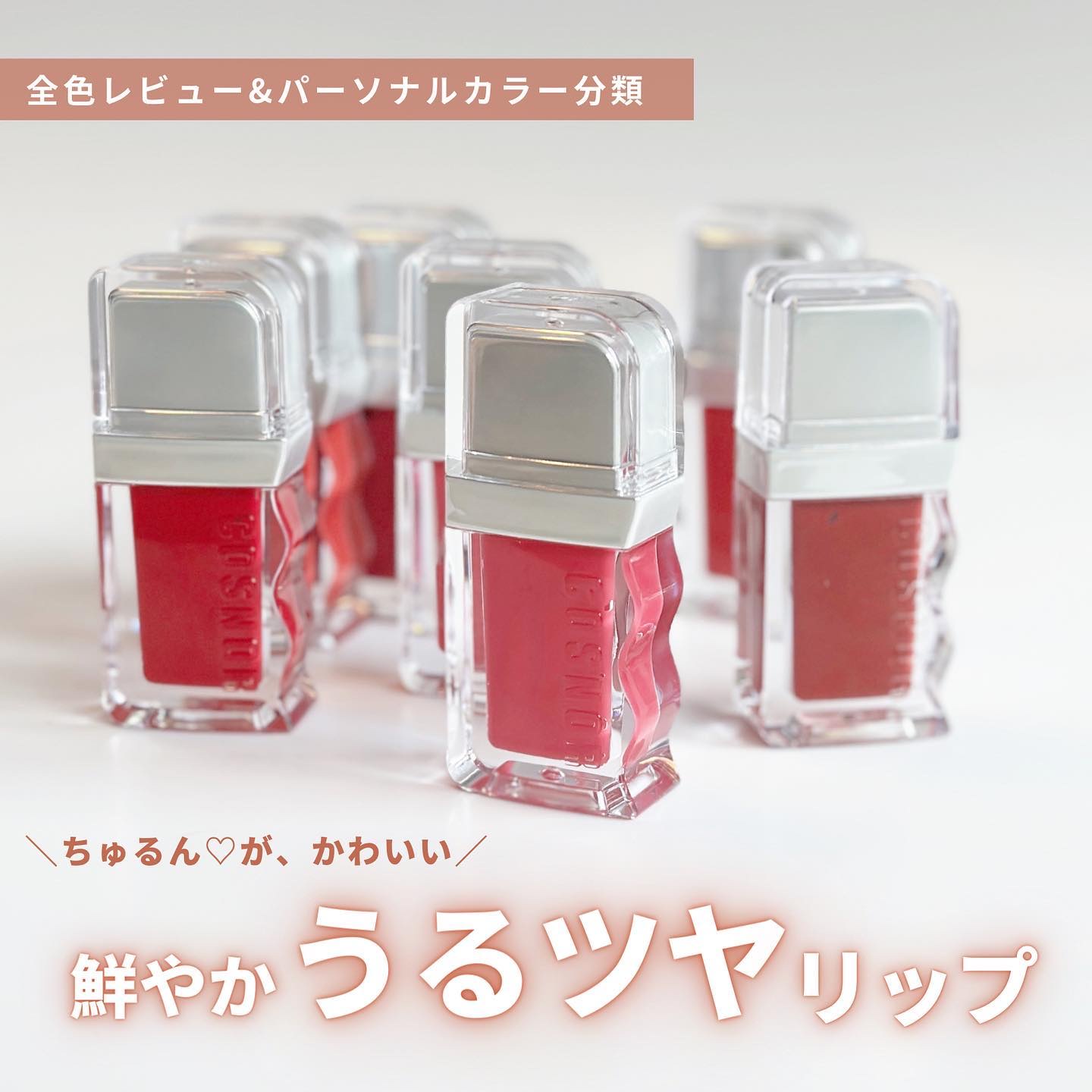 - <01 ソフィー(Surfy)> リンゴ酸ジイソステアリル、ジフェニルシロキシフェニルトリメチコン、精製水、ジフェニルジメチコン、ビスジグリセリルポリアシルアジペート-2、水添ポリイソブテン、ポリグリセリン-3、ポリソルベート60、セチルPEG/PPG-10/1ダイメチコン、イソステアリン酸ソルビタン、BG、ペンチレングリコール、1,2-ヘキサンジオール、ダイメジメチコン、アクリル酸ヒドロキシエチル/ナトリウムアクリロイルジメチルタウリン酸共重合体スクアラン、セテアレス-20、二酸化チタン、エチルヘキシルグリセリン、赤色227号、黄色5 号、香料、赤色104号(1)、水酸化酸化アルミニウム、ポリアクリル酸アンモニウム溶液、黄色4号、フェノキシエタノール、マカデミア種子油、ローズヒップ油、ツバキ油、トコフェロール <02 ピンクラッシュ(Pinkrush)> リンゴ酸ジイソステアリル、ジフェニルシロキシフェニルトリメチコン、精製水、ビスジグリセリルポリアシルアジペート-2、ジフェニルジメチコン、水添ポリイソブテン、ポリグリセリン-3、ポリソルベート60、セチルPEG/PPG-10/1ダイメチコン、イソステアリン酸ソルビタン、BG、ダイメジメチコン、ペンチレングリコール、1,2-ヘキサンジオール、アクリル酸ヒドロキシエチル/ナトリウムアクリロイルジメチルタウリン酸共重合体スクアラン、セテアレス-20、二酸化チタン、エチルヘキシルグリセリン、赤色227号、黄色5 号、香料、水酸化酸化アルミニウム、ポリアクリル酸アンモニウム溶液、フェノキシエタノール、マカデミア種子油、ローズヒップ油、ツバキ油、トコフェロール <03 グレア(Glare) > リンゴ酸ジイソステアリル、ジフェニルシロキシフェニルトリメチコン、精製水、ビスジグリセリルポリアシルアジペート-2、ジフェニルジメチコン、水添ポリイソブテン、ポリグリセリン-3、ポリソルベート60、セチルPEG/PPG-10/1ダイメチコン、イソステアリン酸ソルビタン、BG、ペンチレングリコール、1,2-ヘキサンジオール、ダイメジメチコン、アクリル酸ヒドロキシエチル/ナトリウムアクリロイルジメチルタウリン酸共重合体スクアラン、セテアレス-20、二酸化チタン、エチルヘキシルグリセリン、黄色5 号、香料、赤色104号(1)、赤色227号、水酸化酸化アルミニウム、ポリアクリル酸アンモニウム溶液、黄色4号、フェノキシエタノール、ブリリアントブルーFCF、マカデミア種子油、ローズヒップ油、ツバキ油、トコフェロール <04 ウィッティー(Witty)> リンゴ酸ジイソステアリル、ジフェニルシロキシフェニルトリメチコン、精製水、ビスジグリセリルポリアシルアジペート-2、ジフェニルジメチコン、水添ポリイソブテン、ポリグリセリン-3、ポリソルベート60、セチルPEG/PPG-10/1ダイメチコン、イソステアリン酸ソルビタン、BG、ダイメジメチコン、ペンチレングリコール、1,2-ヘキサンジオール、アクリル酸ヒドロキシエチル/ナトリウムアクリロイルジメチルタウリン酸共重合体スクアラン、セテアレス-20、二酸化チタン、黄色5 号、赤色227号、エチルヘキシルグリセリン、香料、水酸化酸化アルミニウム、ポリアクリル酸アンモニウム溶液、フェノキシエタノール、マカデミア種子油、ローズヒップ油、ツバキ油、トコフェロール <05 パンチ(Punch)> リンゴ酸ジイソステアリル、ジフェニルシロキシフェニルトリメチコン、精製水、ジフェニルジメチコン、ビスジグリセリルポリアシルアジペート-2、水添ポリイソブテン、ポリグリセリン-3、ポリソルベート60、セチルPEG/PPG-10/1ダイメチコン、イソステアリン酸ソルビタン、BG、ペンチレングリコール、1,2-ヘキサンジオール、ダイメジメチコン、アクリル酸ヒドロキシエチル/ナトリウムアクリロイルジメチルタウリン酸共重合体二酸化チタン、スクアラン、セテアレス-20、黄色5 号、エチルヘキシルグリセリン、香料、赤色227号、赤色104号(1)、水酸化酸化アルミニウム、ポリアクリル酸アンモニウム溶液、フェノキシエタノール、マカデミア種子油、ローズヒップ油、ツバキ油、トコフェロール <06 ディア(Dear)> リンゴ酸ジイソステアリル、ジフェニルシロキシフェニルトリメチコン、精製水、ジフェニルジメチコン、ビスジグリセリルポリアシルアジペート-2、水添ポリイソブテン、ポリグリセリン-3、ポリソルベート60、セチルPEG/PPG-10/1ダイメチコン、イソステアリン酸ソルビタン、BG、ペンチレングリコール、1,2-ヘキサンジオール、ダイメジメチコン、アクリル酸ヒドロキシエチル/ナトリウムアクリロイルジメチルタウリン酸共重合体スクアラン、セテアレス-20、二酸化チタン、エチルヘキシルグリセリン、黄色5 号、赤色227号、香料、水酸化酸化アルミニウム、黄色4号、ポリアクリル酸アンモニウム溶液、フェノキシエタノール、マカデミア種子油、ブリリアントブルーFCF、ローズヒップ油、ツバキ油、トコフェロール <07 カインド(Kind)> リンゴ酸ジイソステアリル、ジフェニルシロキシフェニルトリメチコン、精製水、ジフェニルジメチコン