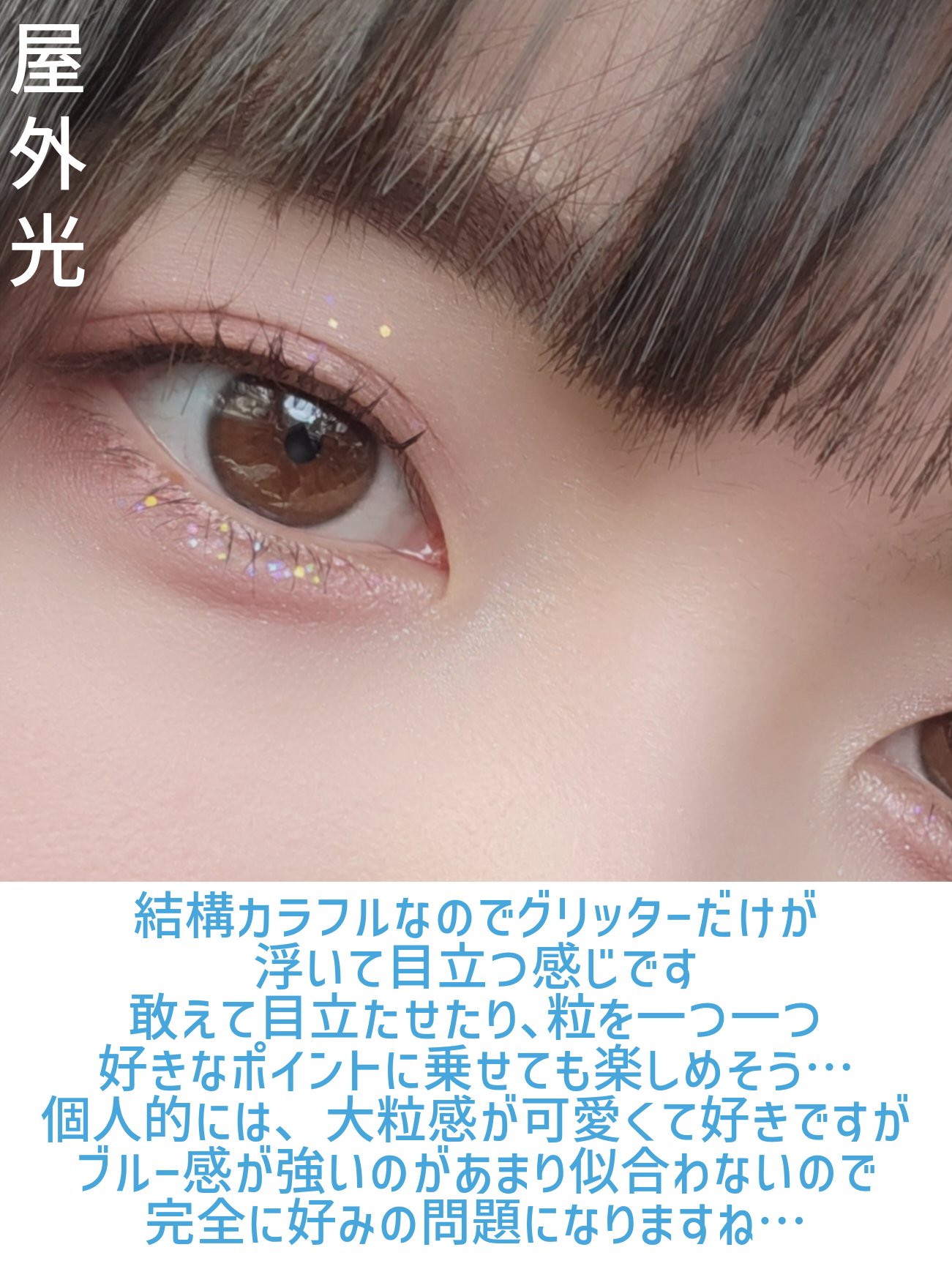 | リキッドアイシャドウランキング第2位 | 中に入っている偏光オーロララメの大きさがまた絶妙で、そのまま塗って使っても良いんだけど瞼にラメを乗せる感じで使ってもキラキラで可愛いよ | 詳細を見る | |