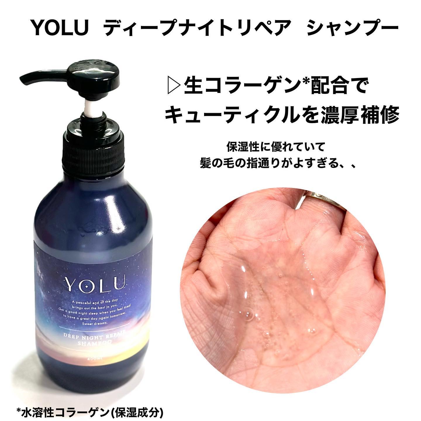 YOLUディープナイトリペアシャンプー&トリートメント(ベルガモット&ムスクの香り)試供品使ってみました!生コラーゲン(水溶性コラーゲン:保湿成分)CMC類似補修成分(ラウロイルグルタミン酸ジ(フィトステリル/オクチドデジル):毛髪補修成分)...