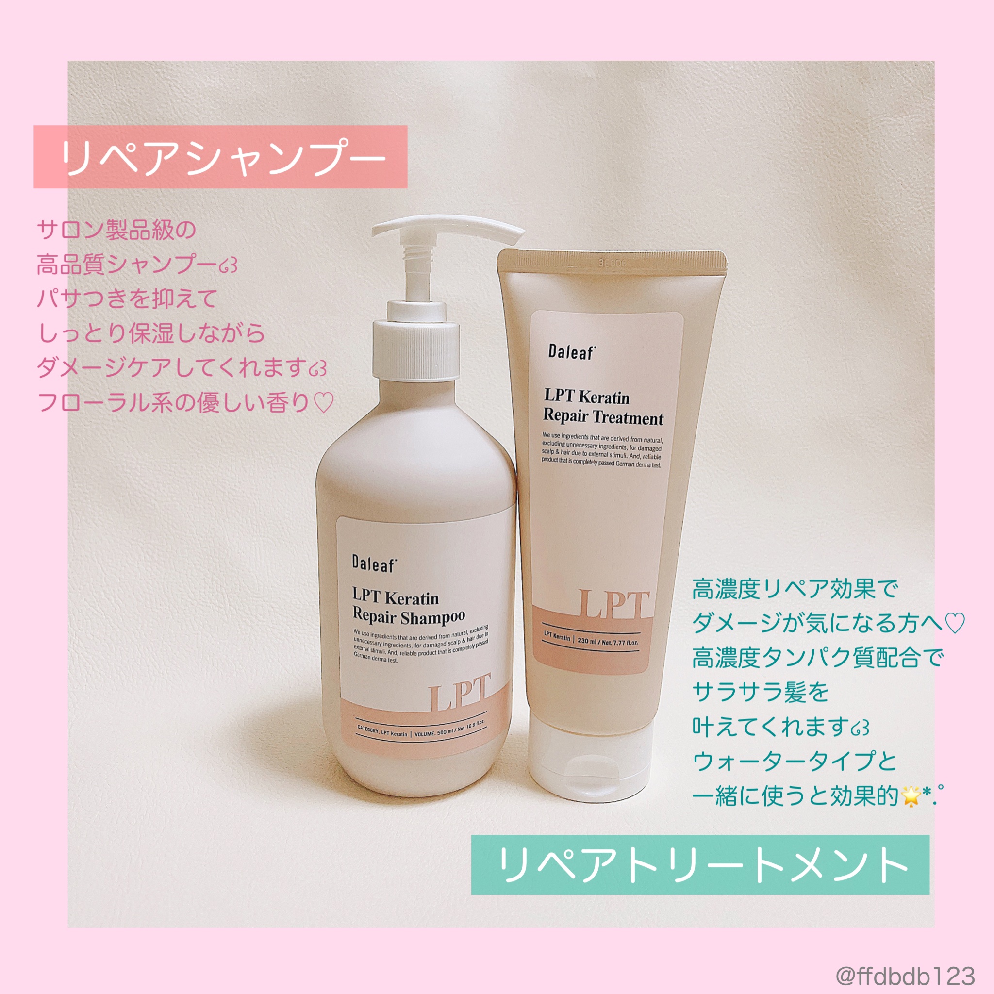 #PRダリーフさんよりいただきました✨DaleafLPTケラチンリペアトリートメント頻繁なブリーチやパーマによるダメージが気になる方にオススメ!髪の毛にLPTタンパク質をたっぷりと満たしサラツヤ髪に💖低分子と高分子タンパク質をダブル配合!髪に...