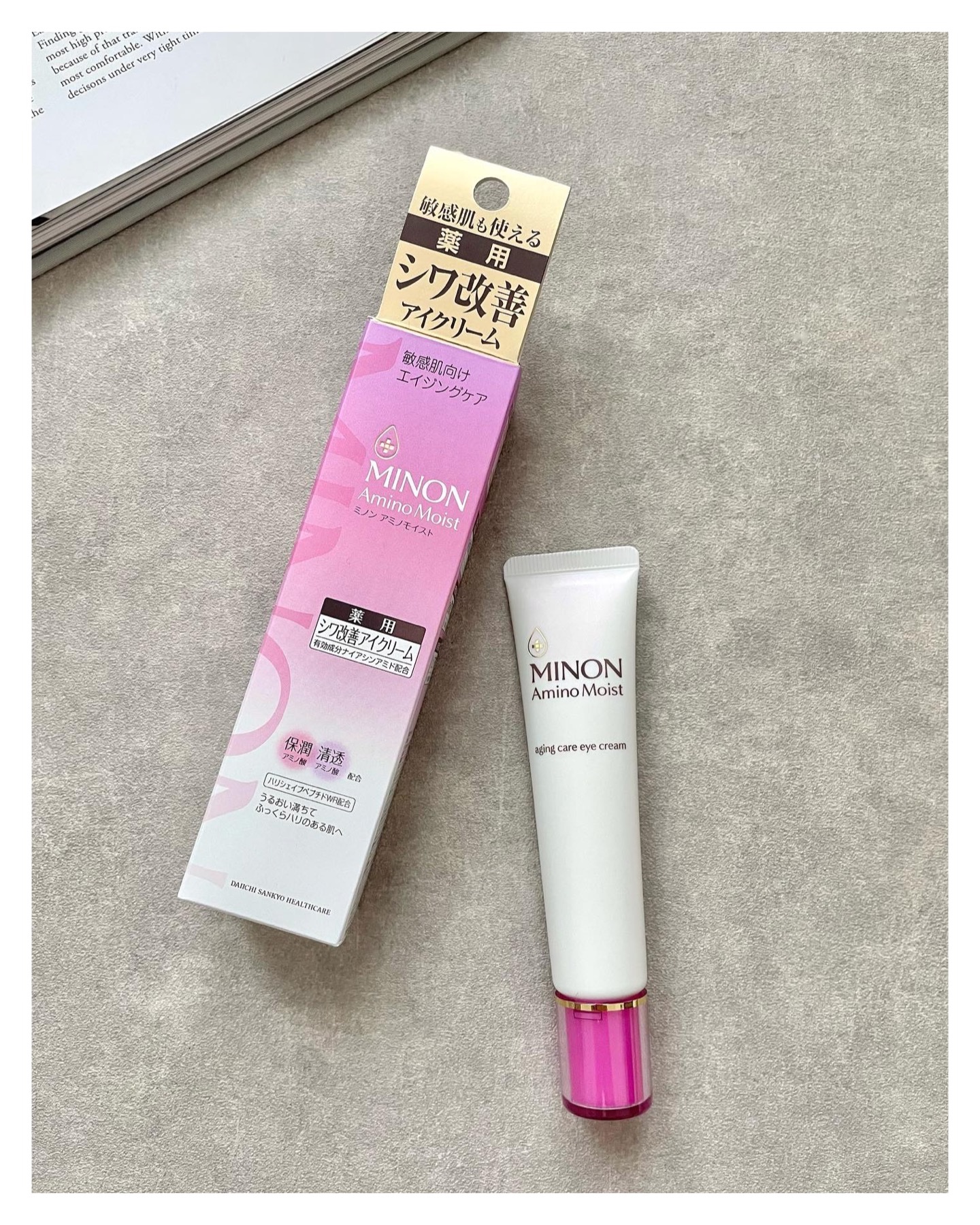 - 【敏感肌も使える薬用シワ改善アイクリーム】 ダブルの有効成分配合。気になるシワを改善し、しみ・そばかす*1、肌あれを防ぎます。 ●ナイアシンアミド:シワ改善&しみ予防 ●グリチルリチン酸2K:肌あれ予防 ハリを与えつや肌に導く「ハリシェイプペプチドWR*2」配合。 使い続けるたび、シワを改善し、うるおってハリのある明るい印象の目元へ。 エイジングケア:年齢に応じたお手入れケア *1メラニンの生成を抑え、しみ・そばかすを防ぐ *2ヤシ油脂肪酸水解コラーゲンK (販売名:ミノンアミノモイストAE)【医薬部外品】