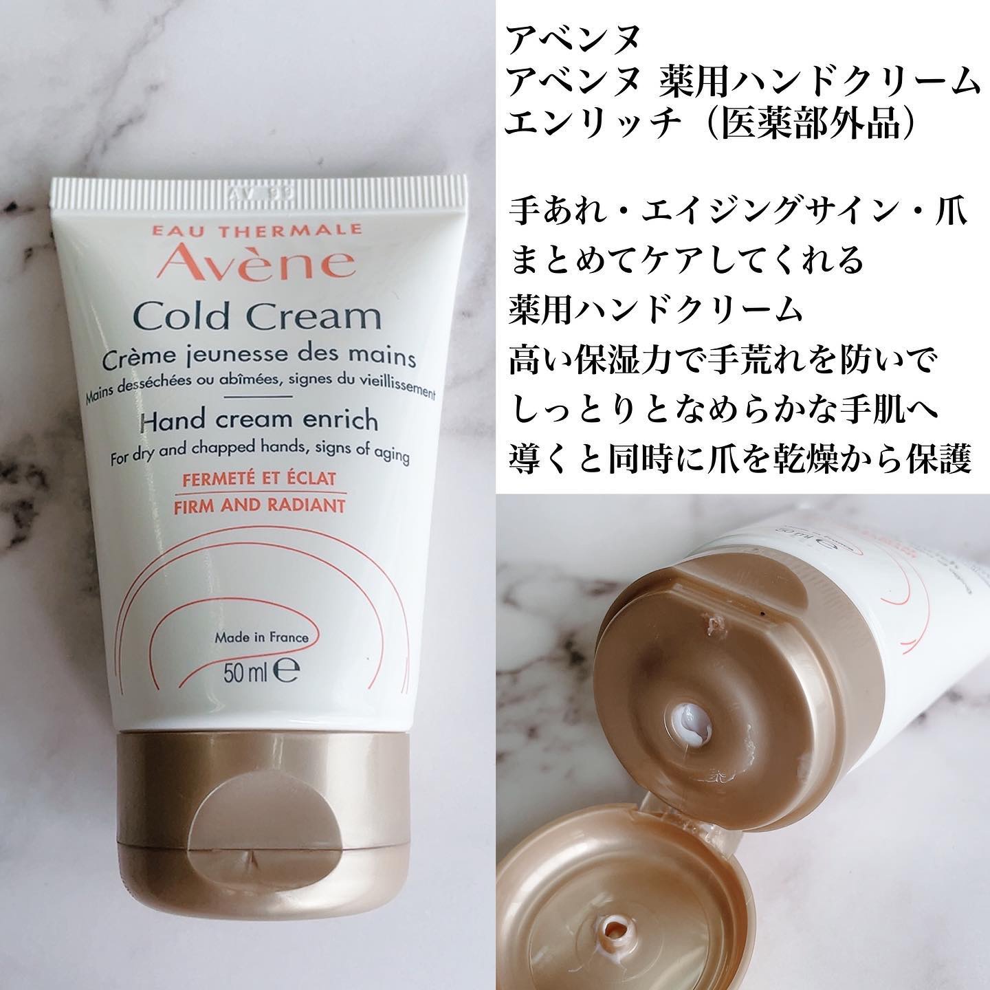 - アベンヌコールドクリーム成分配合で、保湿効果の高いクリームです。乾燥や外部刺激からしっかりまもり、使うほどあれにくい手肌に導きます。 なめらかに伸びて、ベタつかないから、スマホも、仕事も、水仕事もすぐOKです