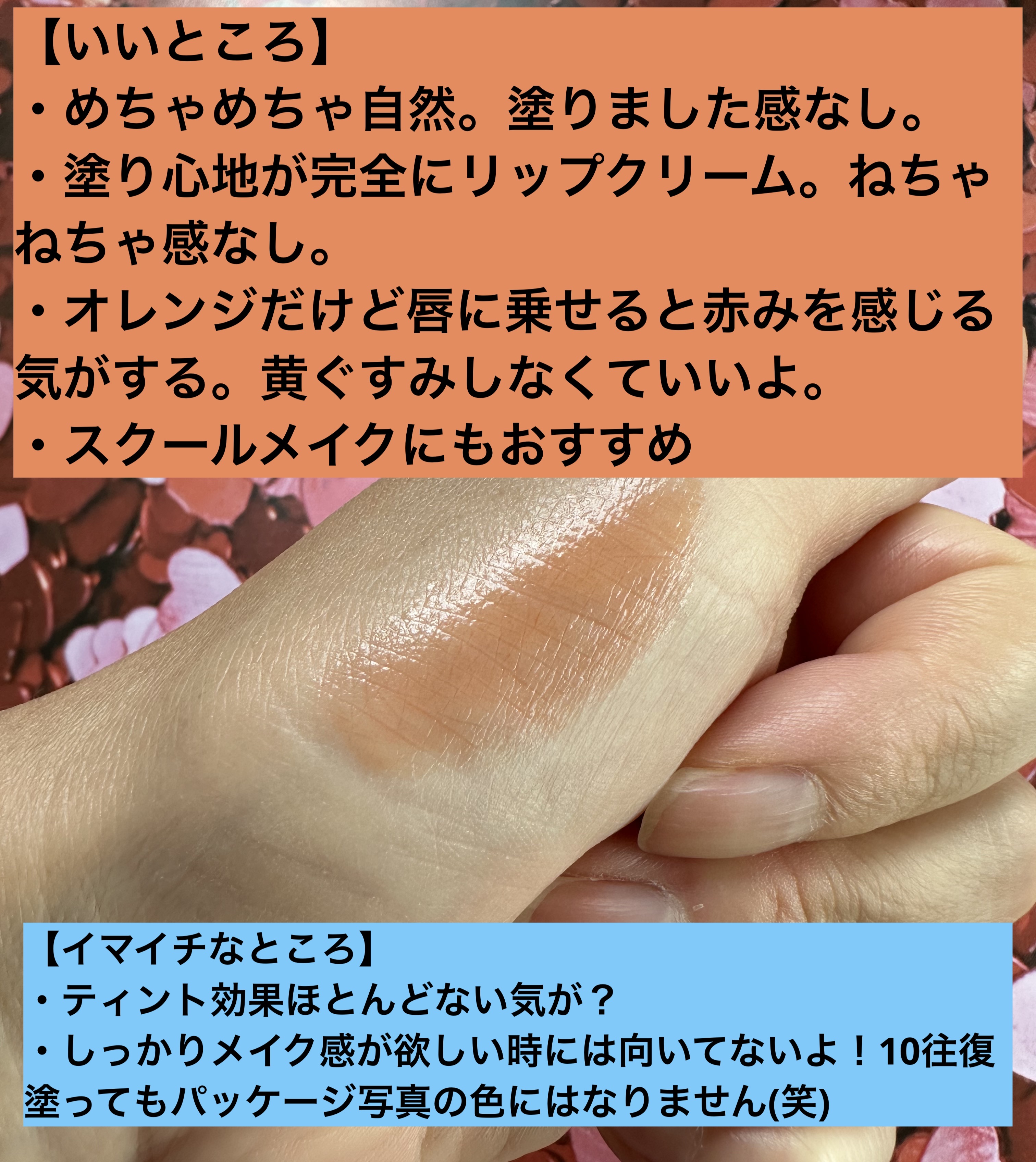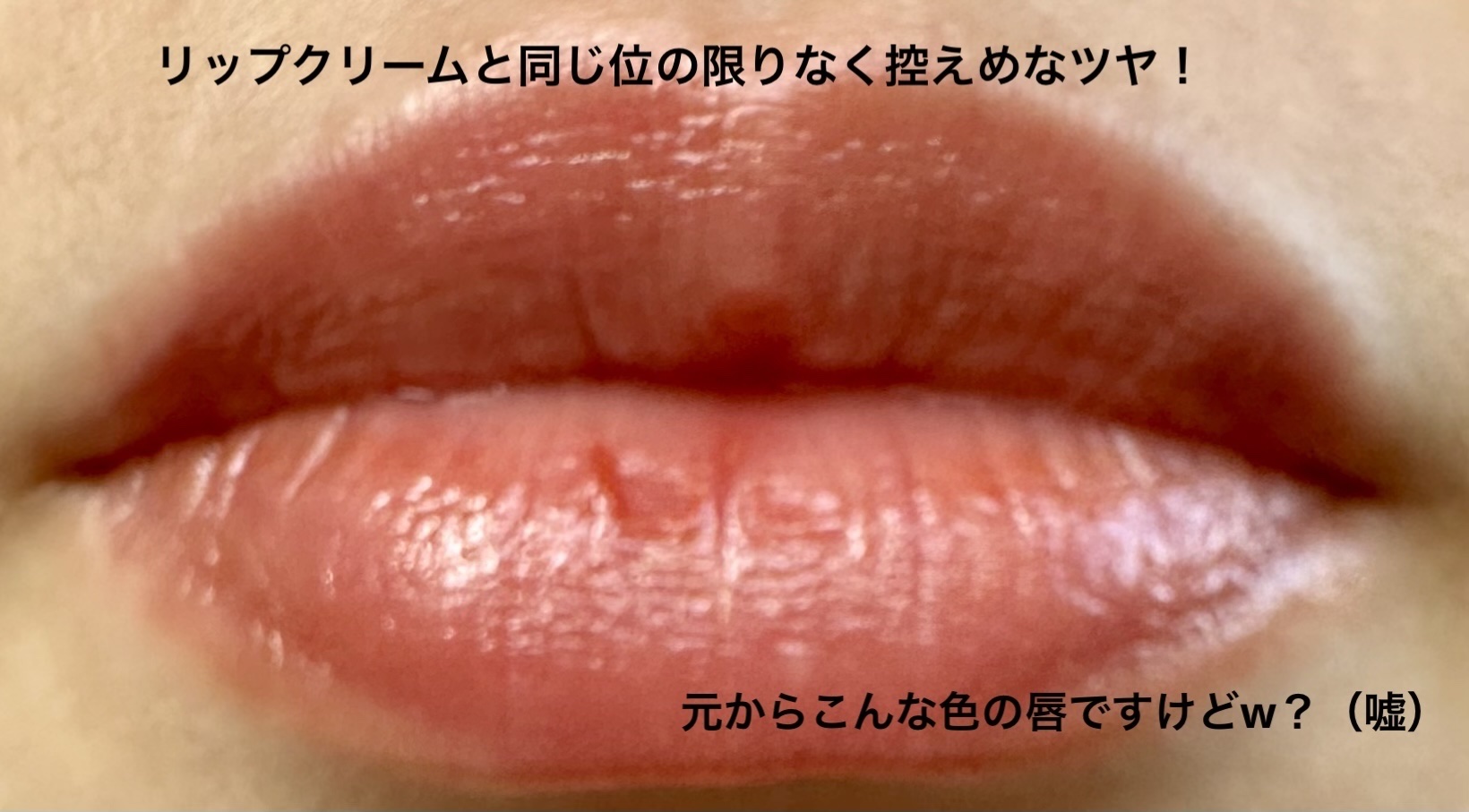 最初塗った瞬間は素の唇の色に近すぎて塗る意味ってあるのか???と思いましたが(笑) 素の唇とのわずかな色の差でもちゃんと塗ってる感って出るものですね👄 篠○涼子みたいな大人っぽさが出せる気がする(伝われ…)のでお仕事メイクにもオススメ! rom&ndのジューシーラスティングティントなど好きなのですがオフィスではちょっと派手かなって思ってました。 テカテカ感が少ない&お色味のおかげでこちらの方がオフィスで使いやすそうです。