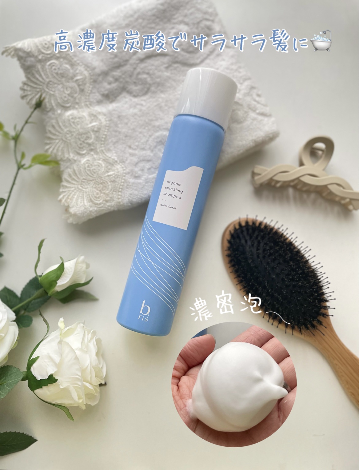 ・b.risorganicsparklingshampoo(ビーリス炭酸シャンプー)・b.rishairserum(ビーリスヘアセラム)フルーティーバニラ実はたまにビーリス炭酸シャンプー使ってる愛用者よ🤗5,000ppmの高濃度炭酸...