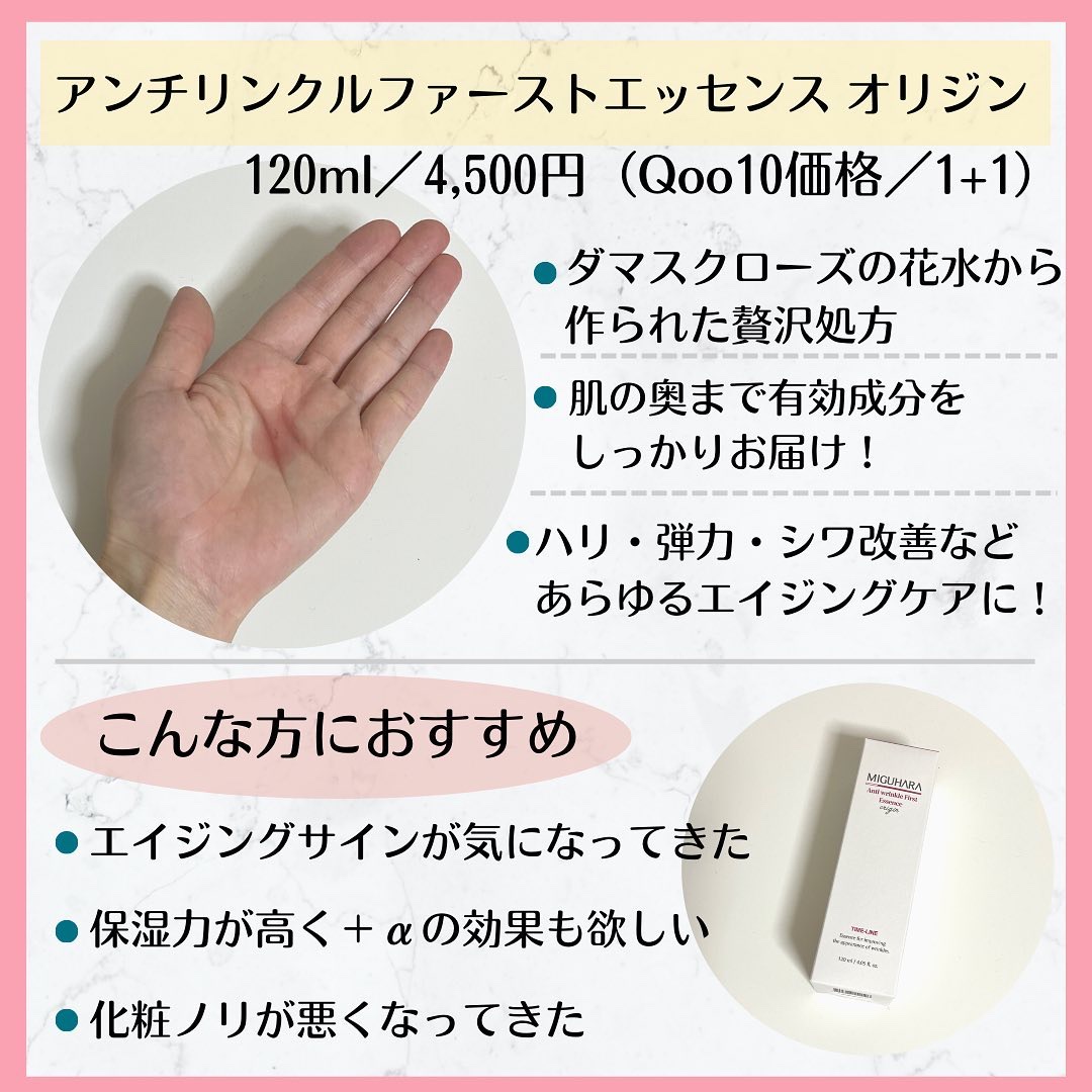 MIGUHARA:アンチリンクルエフェクトアンプル&アンチリンクルファーストエッセンスオリジン⭐️アンチリンクルエフェクトアンプルダマスクローズ花水やレスベラトール・アデノシン・3種ヒアルロン酸を配合した美容液💁♀️適度にとろみのあるテクス...