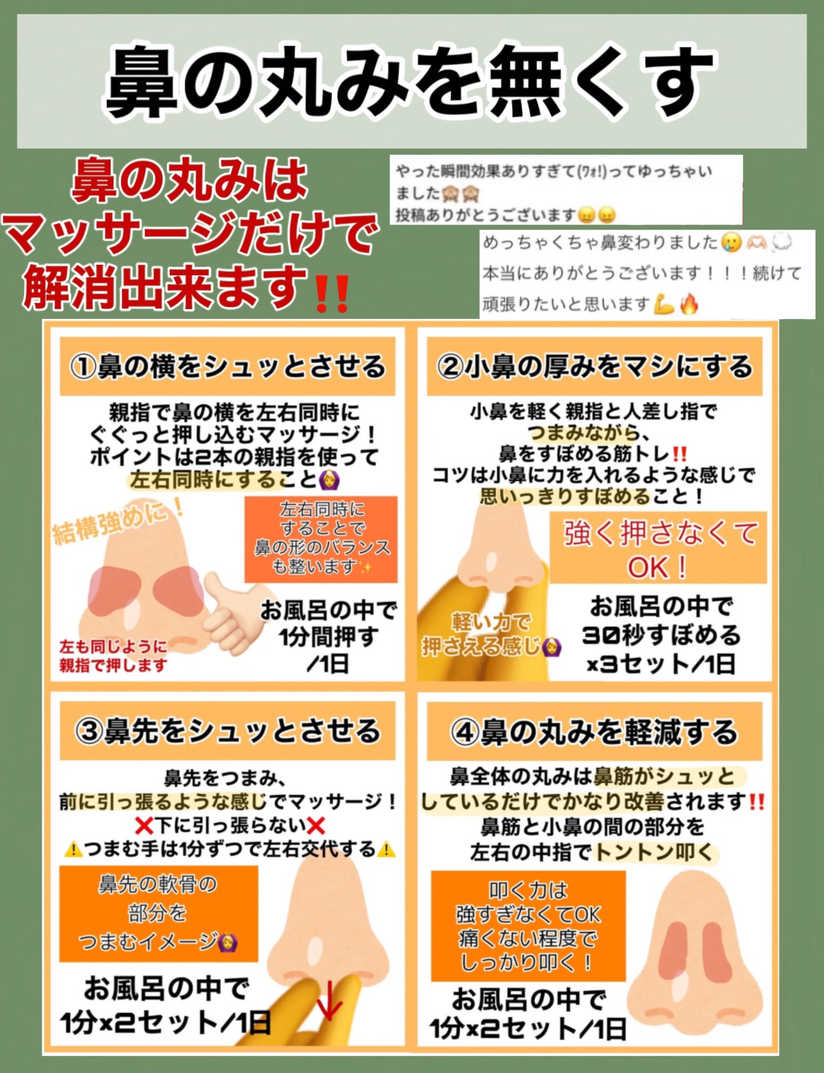 ✳【美鼻】自分の鼻の良さを最大限に引き出すマッサージ✳突然ですが、鼻の形は変えられます正確に言うと骨の形は変えられませんが、軟骨を変形?させることや脂肪を減らすことは出来ます!軟骨を変形させたり脂肪を減らすことで、鼻が高くなったり、だんご鼻が...